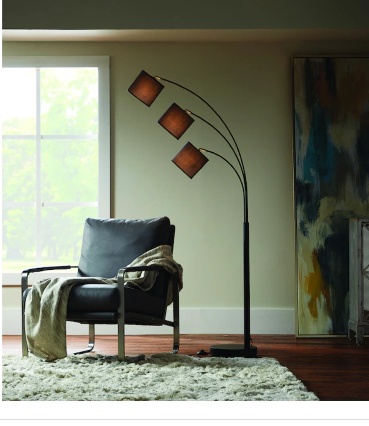 Black 3-Arc Floor Lamp with Square Shades