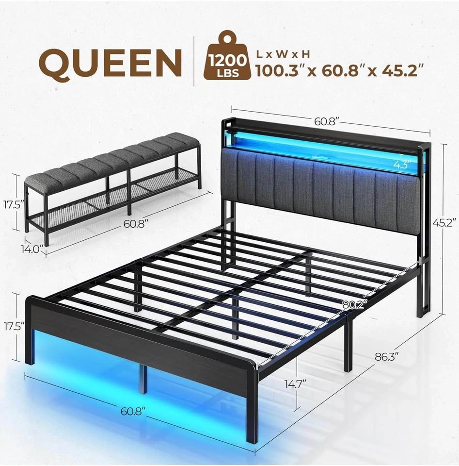 • Built-in Tech: RGB LED lights on the headboard and footboard (12 modes) with a convenient controller, plus a built-in headboard charging station (2 USB, 1 Type-C).