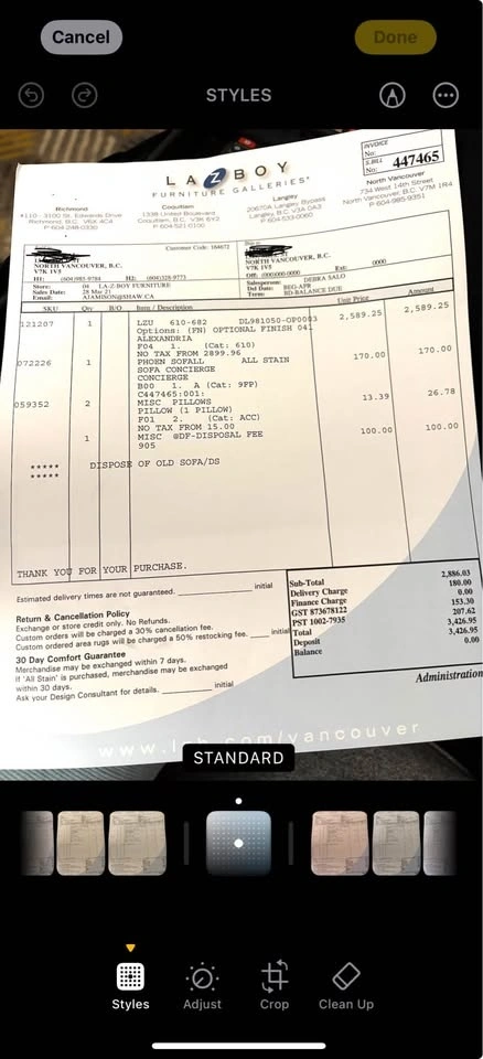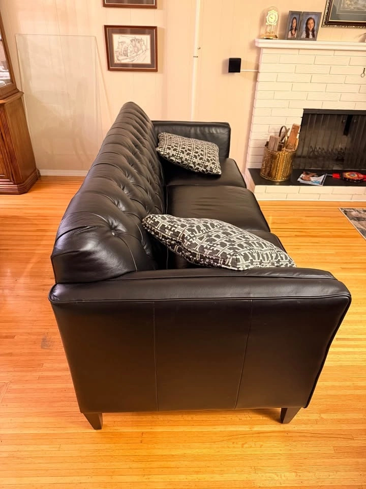 Excellent Lazyboy leather couch. This 3 seater sofa was $3500 when new. It is 7 foot width, 35 inch depth, and 34 inch height. Rarely used, original invoice from purchase is available. Lynn Vallley North Vancouver for pick up.