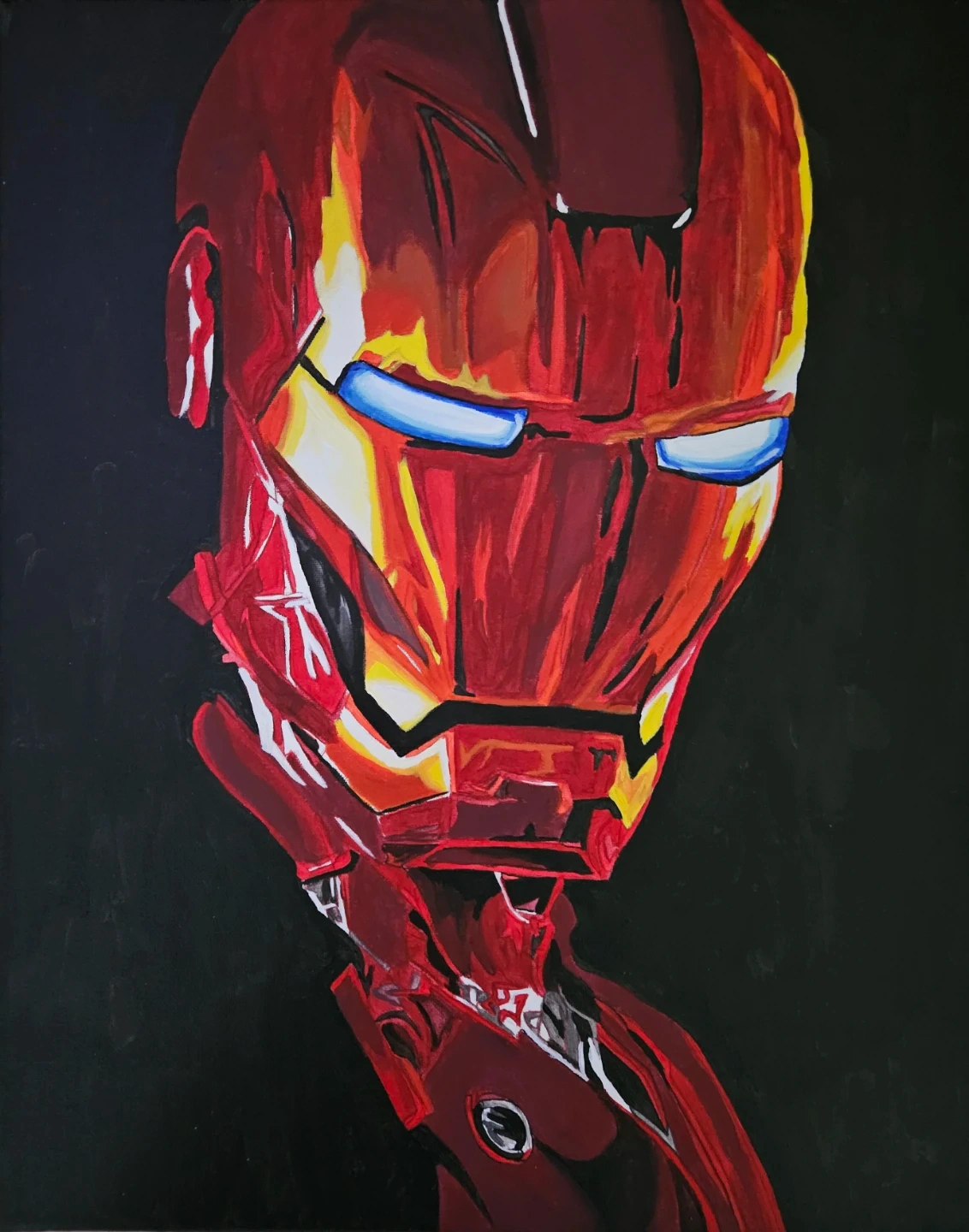 This is a canvas painting of Iron Man. It's hand-painted with vibrant colours. A great addition for any Marvel fan's collection! This is signed.
