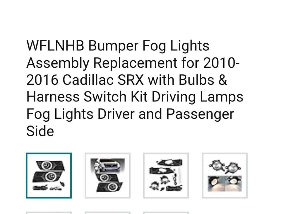 WFLNHB Bumper Fog Lights Assembly Replacement for 2010-2016 Cadillac SRX with Bulbs & Harness Switch Kit Driving Lamps Fog Lights Driver and Passenger Side