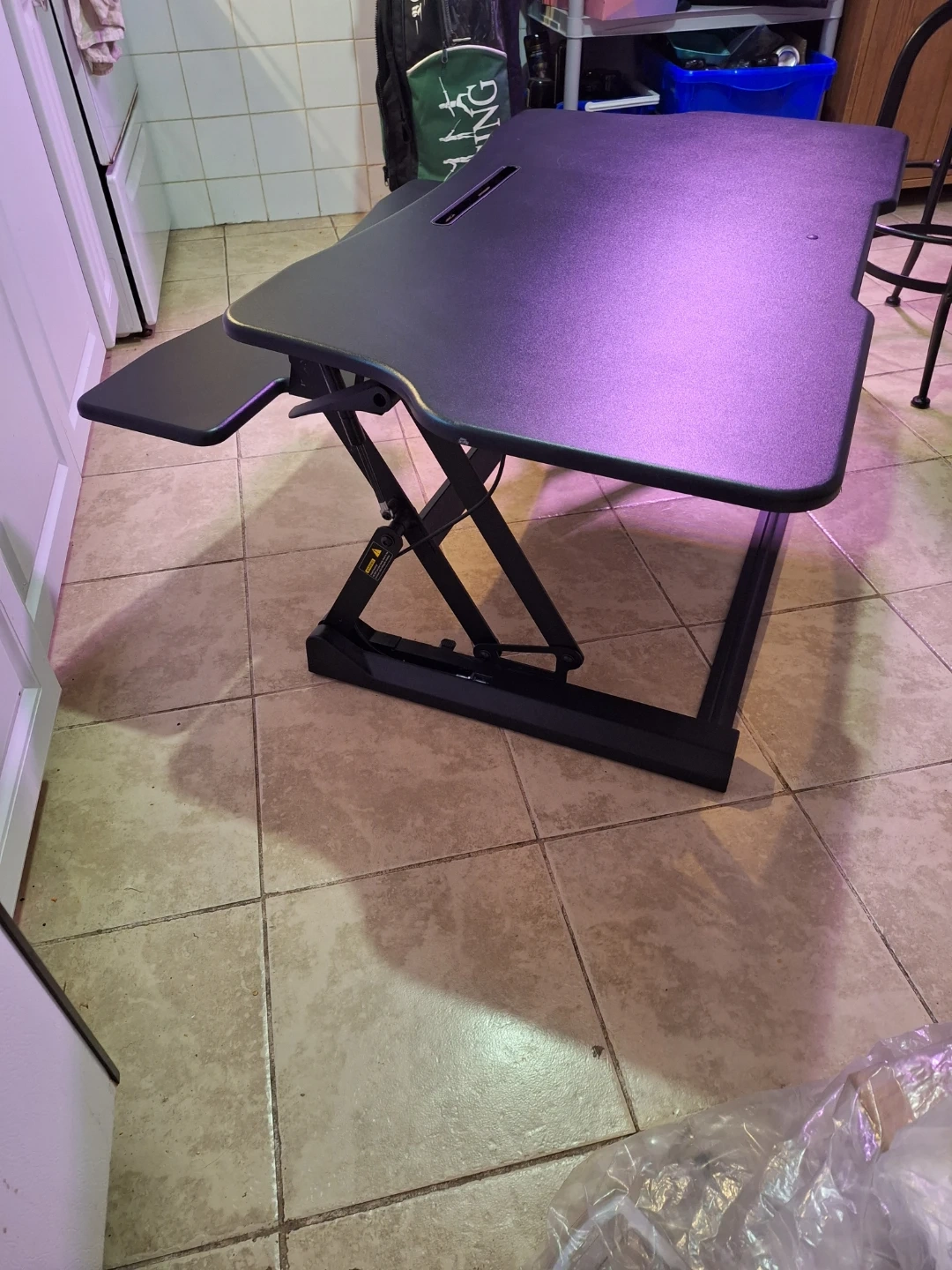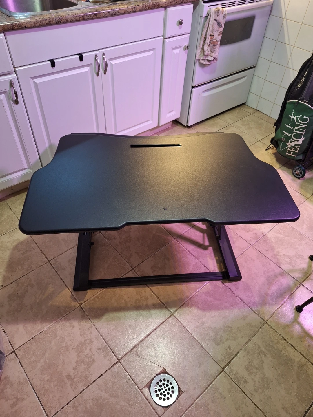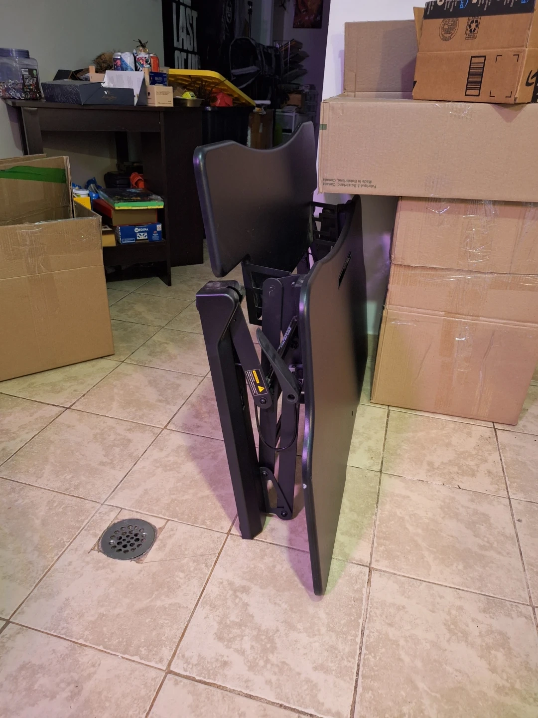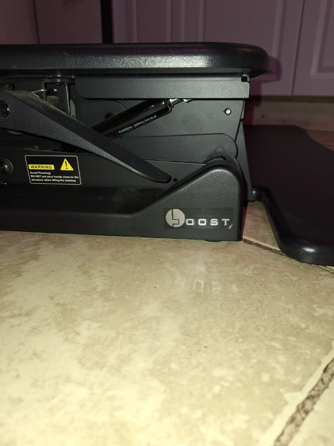 Boost Converter for a desk top. This thing is huge with lots of surface area, but can fold up to stow away if needed. The mechanism for raising and lowering is pneumatic, so there's no need to plug it in. The top has a couple of light scuff marks but no scratches.
