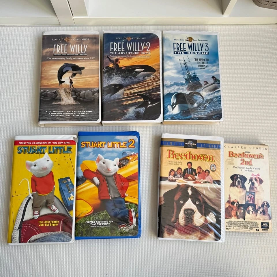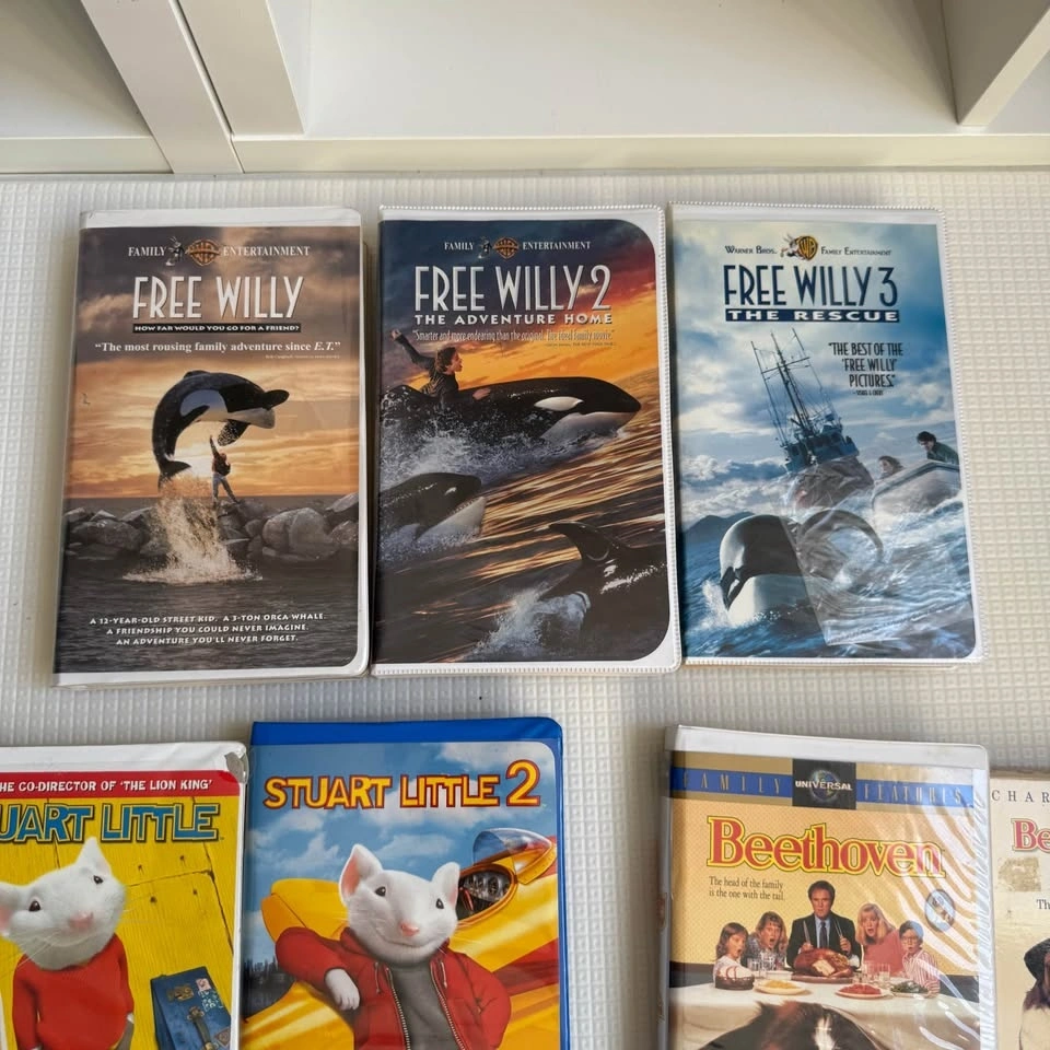 Awesome collection of classic family movies on VHS. Includes the complete Free Willy trilogy, both Stuart Little movies, and the first two Beethoven films. Great for a nostalgic movie night or to add to your VHS collection! $15 for all or $3 each. Pick up in Richmond Hill.