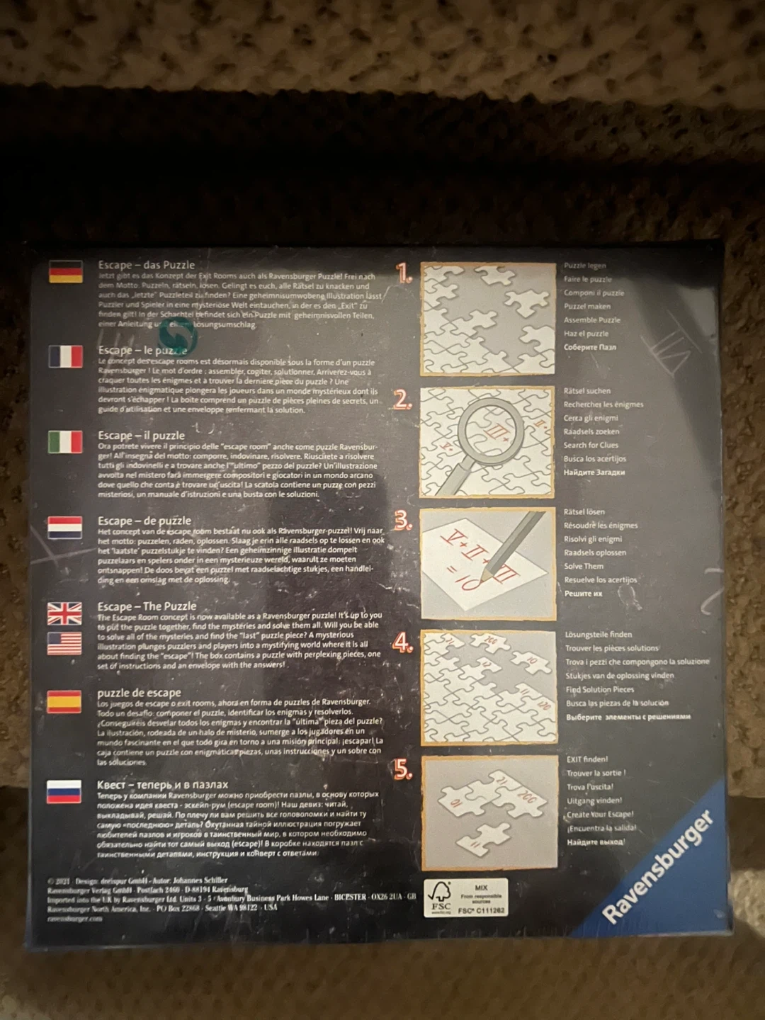 This Ravensburger Escape Puzzle 759 offers an immersive experience. It's a puzzle that leads you to a mystery where you'll need to solve riddles. You'll get an illustration along with an envelope to help solve the escape puzzle.