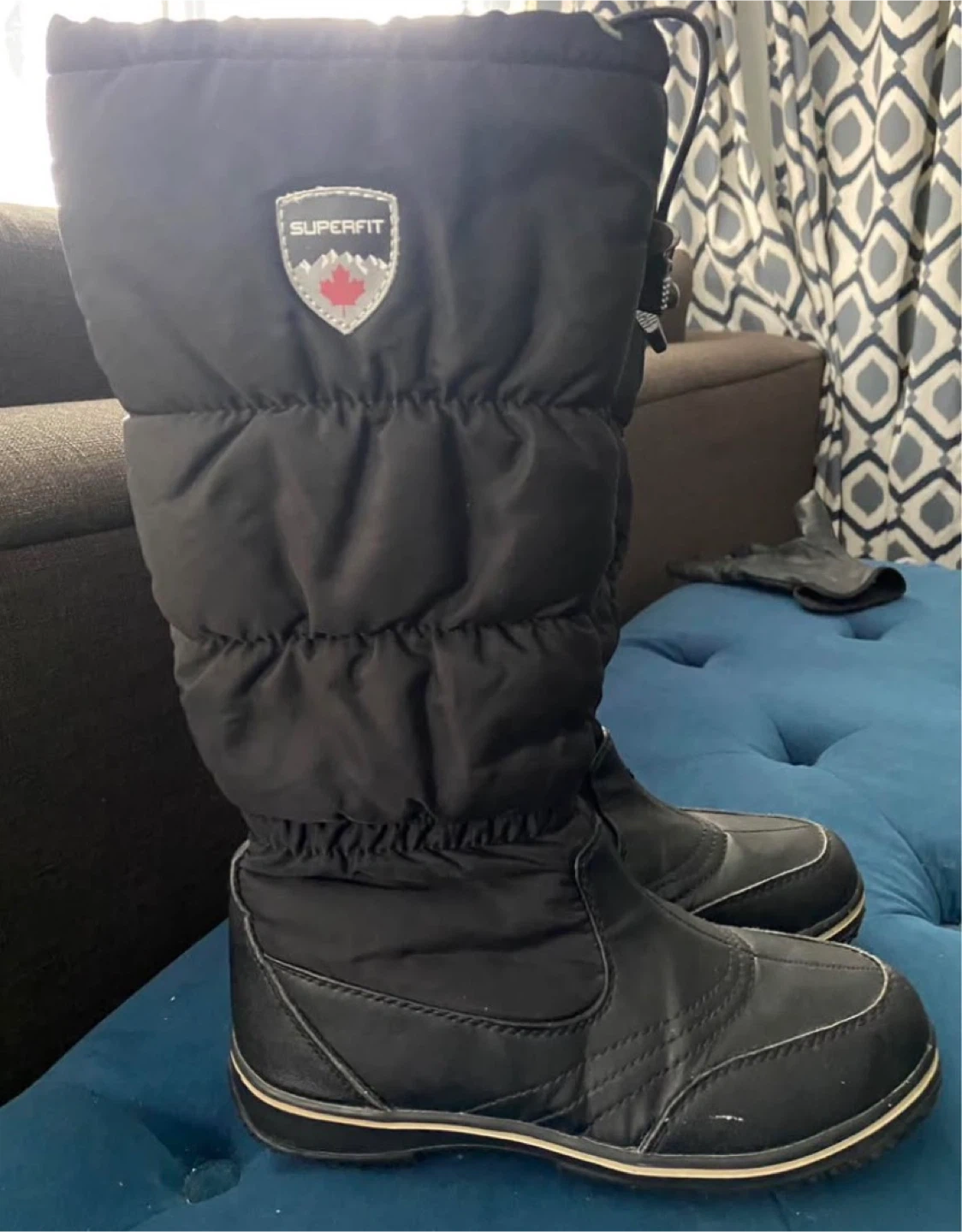 Superfit Canada black puffer boots in a US size 8. These boots feature a waterproof upper and a warm lining for cold weather