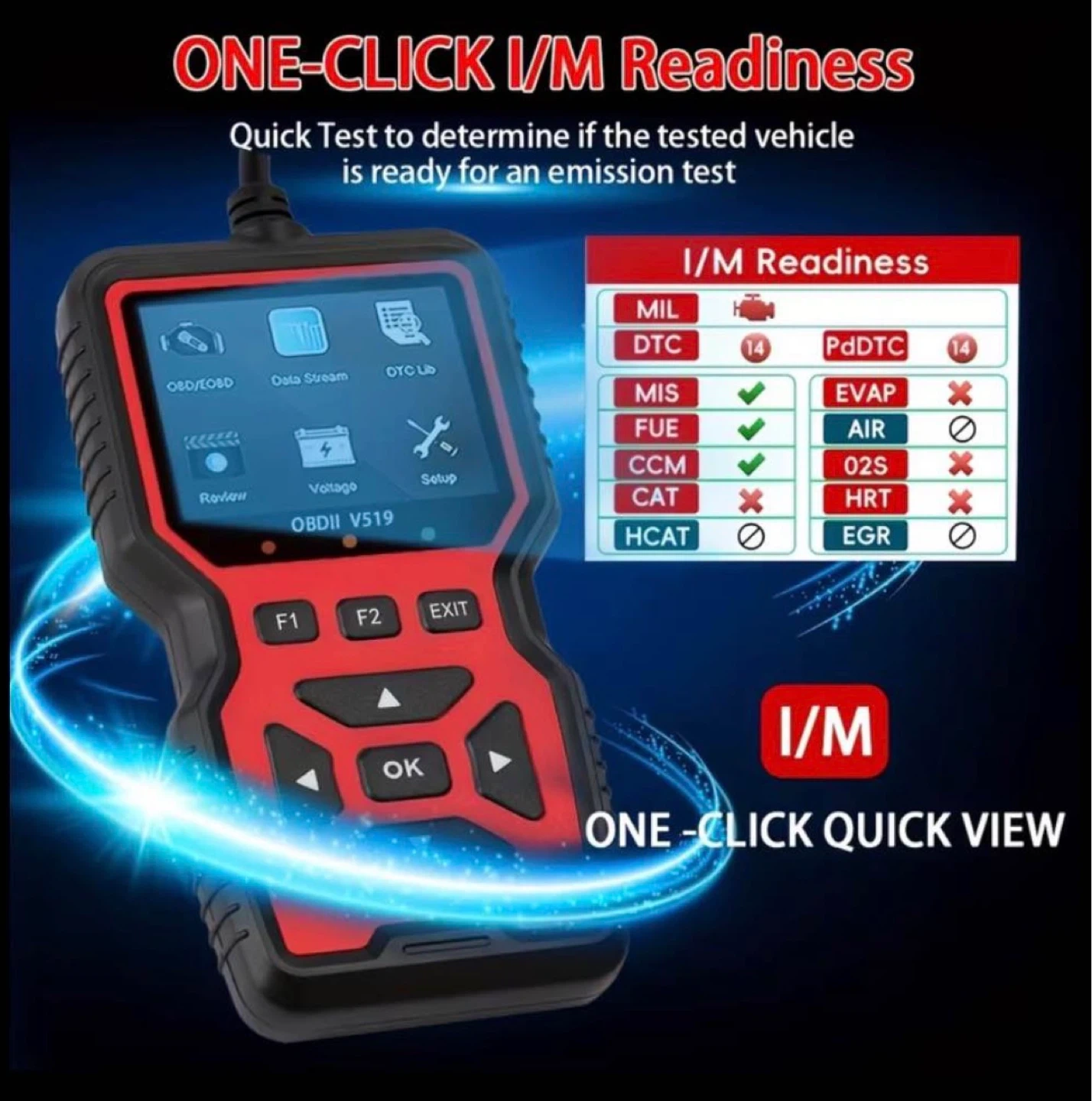 β’ Shows I/M readiness status for emissions testing