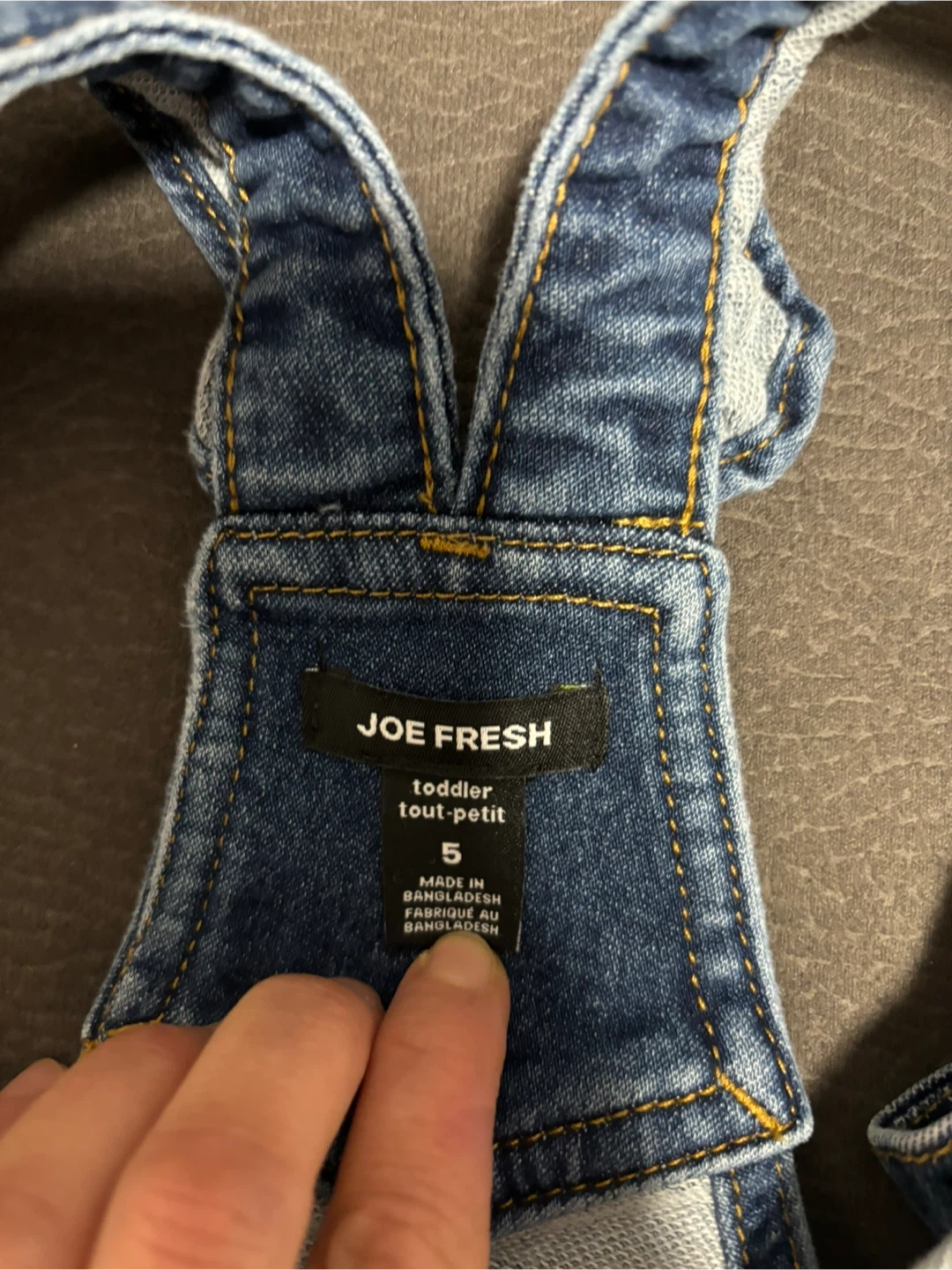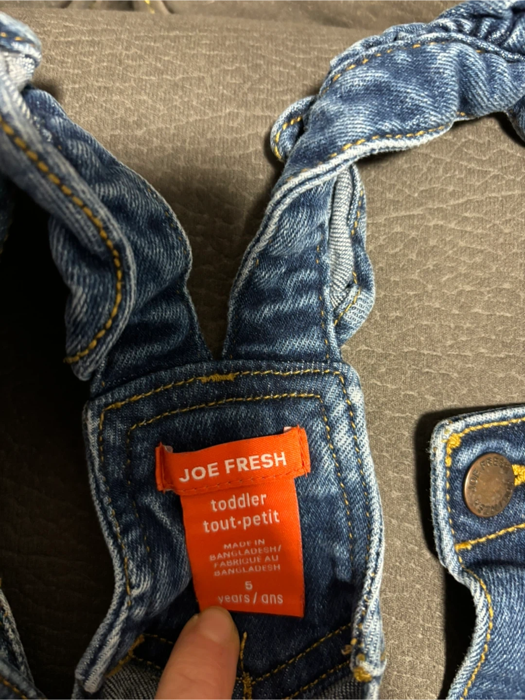 Selling a pair of Joe Fresh toddler overalls in size 5! They are in great condition and made of durable denim material. Perfect for your little one to play and explore in.