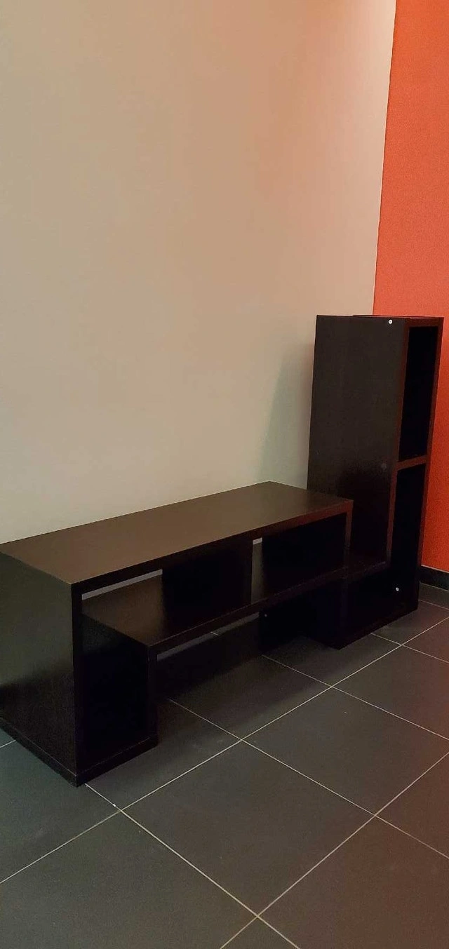 ➡️ This extendable espresso TV stand combines style and functionality, perfect for any living room setup. While it has been a part of our home, it's still in excellent condition and ready for a new space. The sleek espresso finish adds a touch of modern elegance, and the extendable design allows you to adjust it to fit your needs.