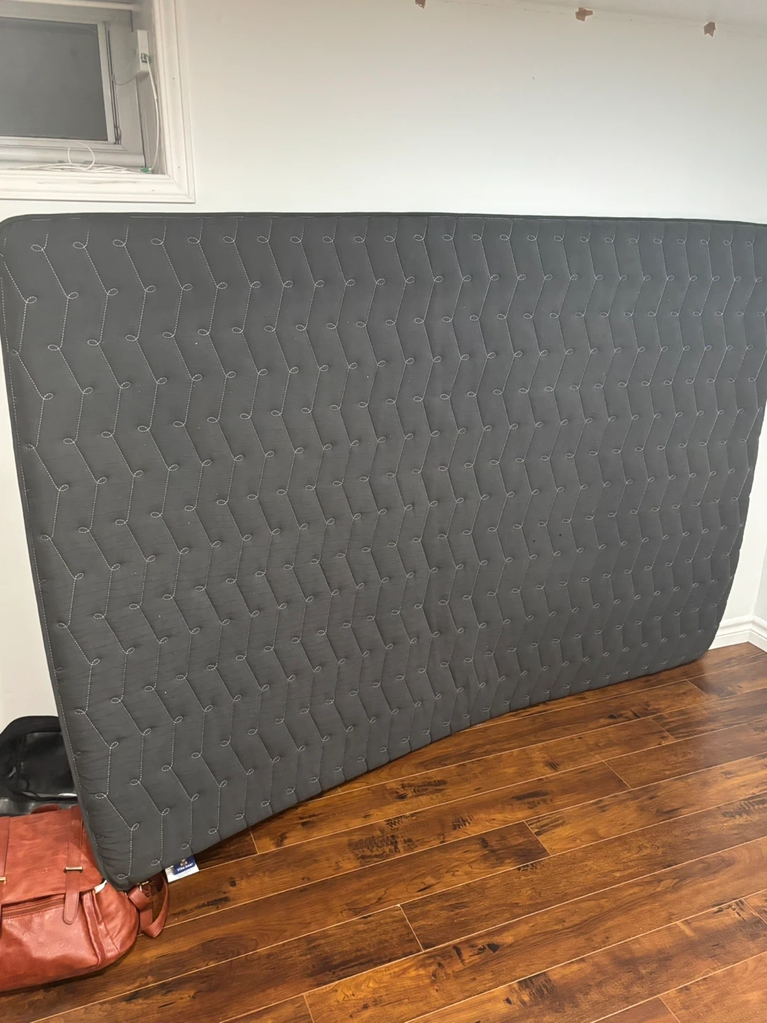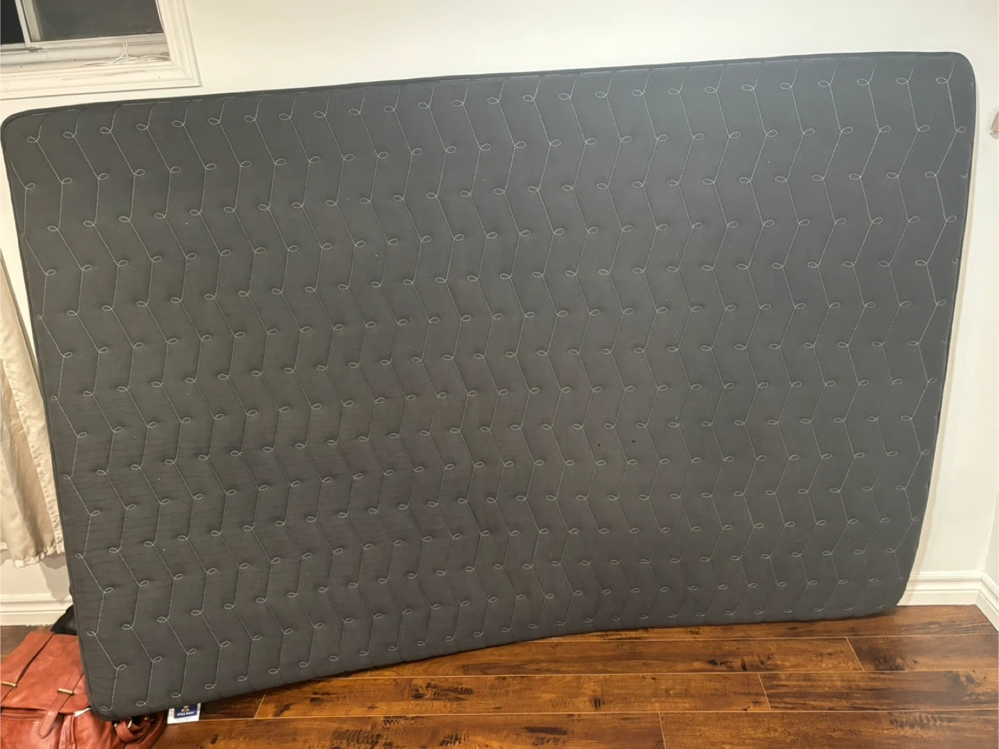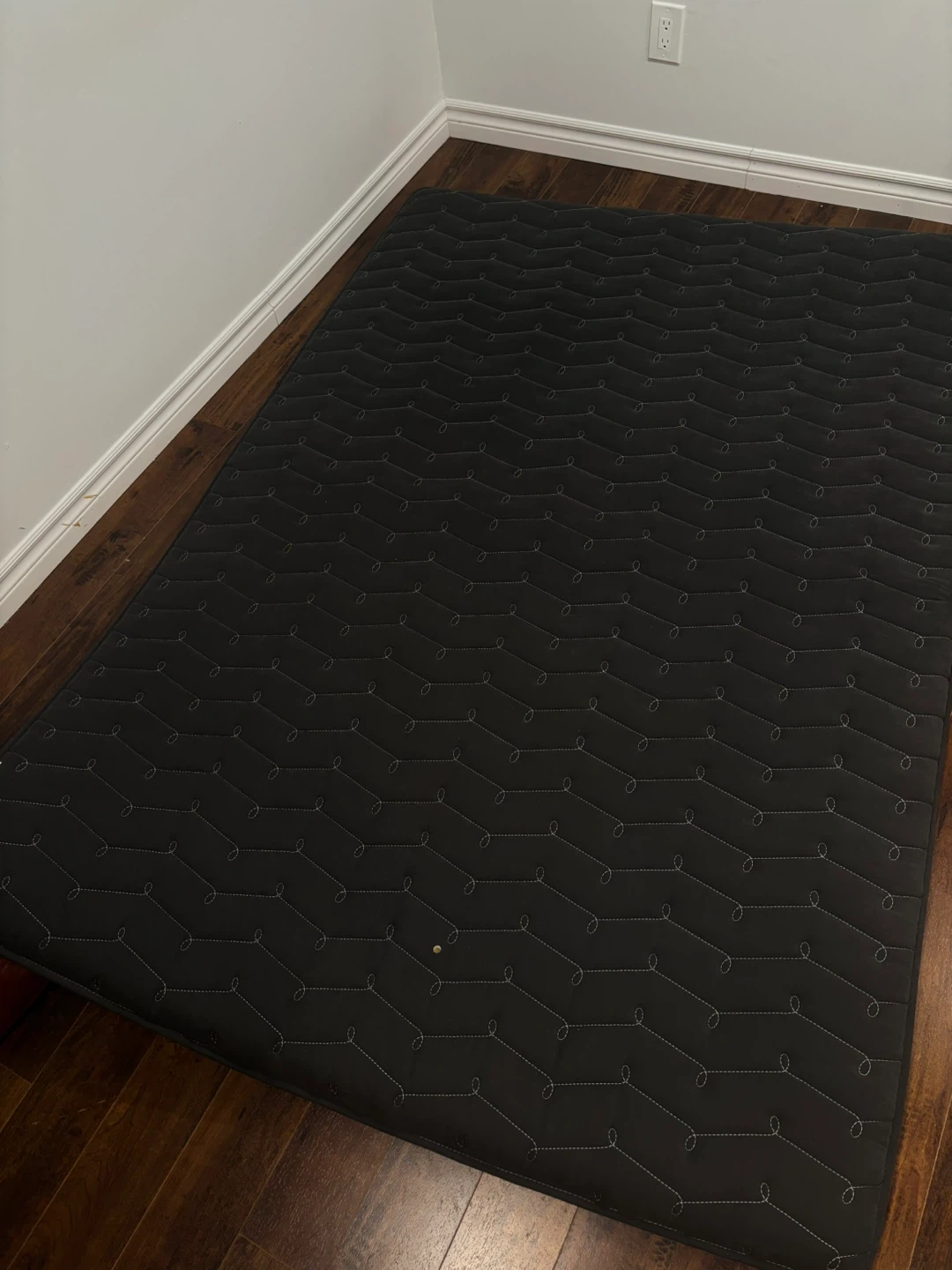 This is a black quilted mattress. It features a chevron stitching pattern all over. This mattress would be useful for a guest room or a starter home.
