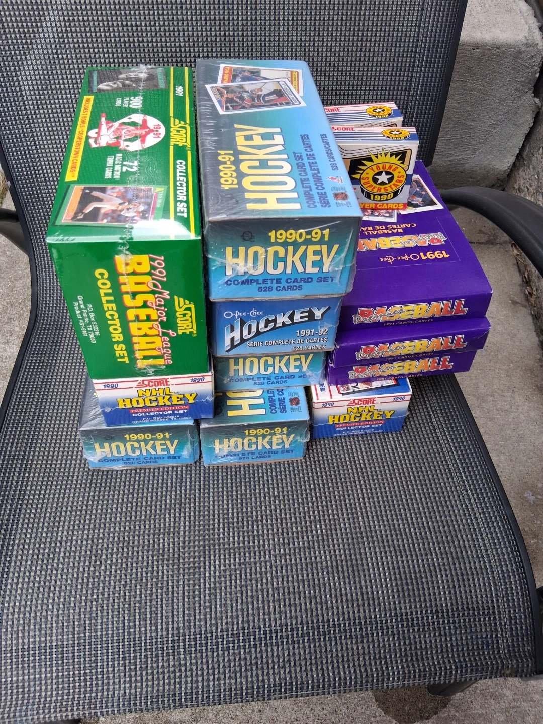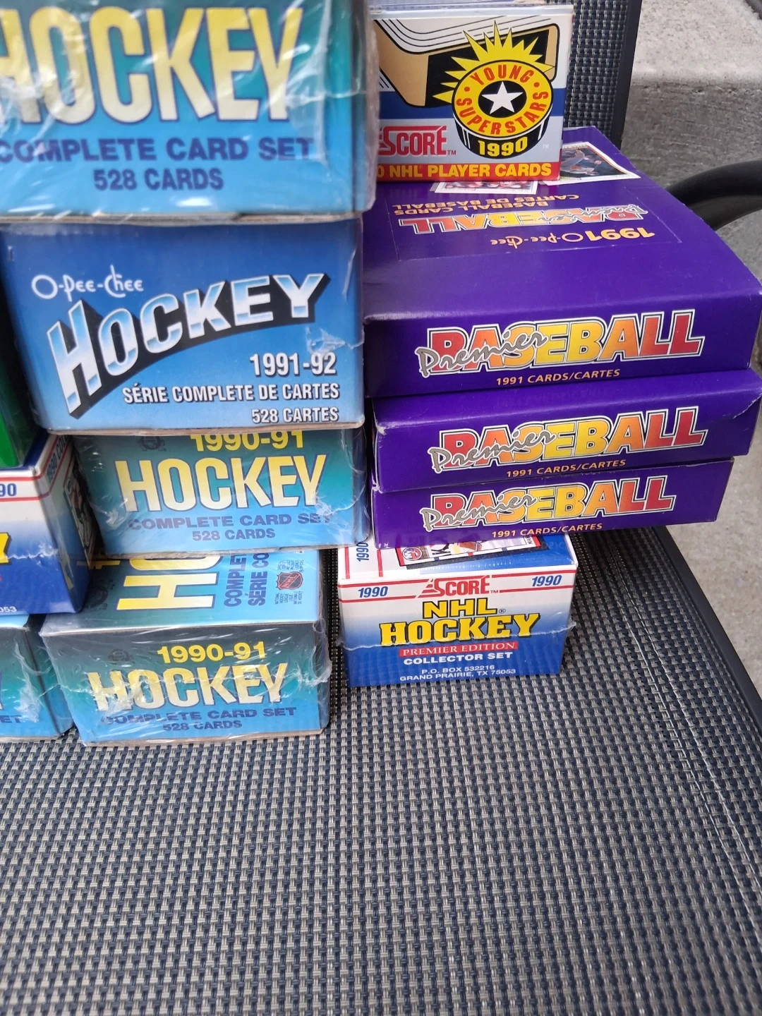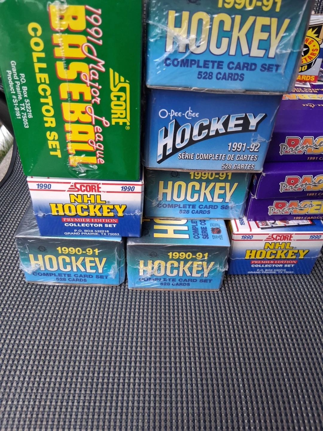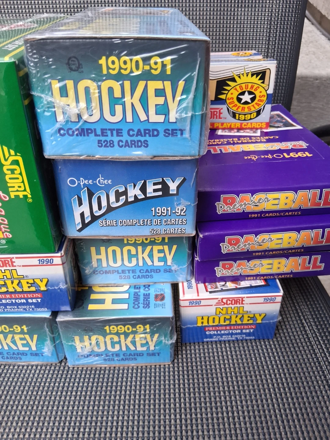 Have sealed sets of hockey and baseball
