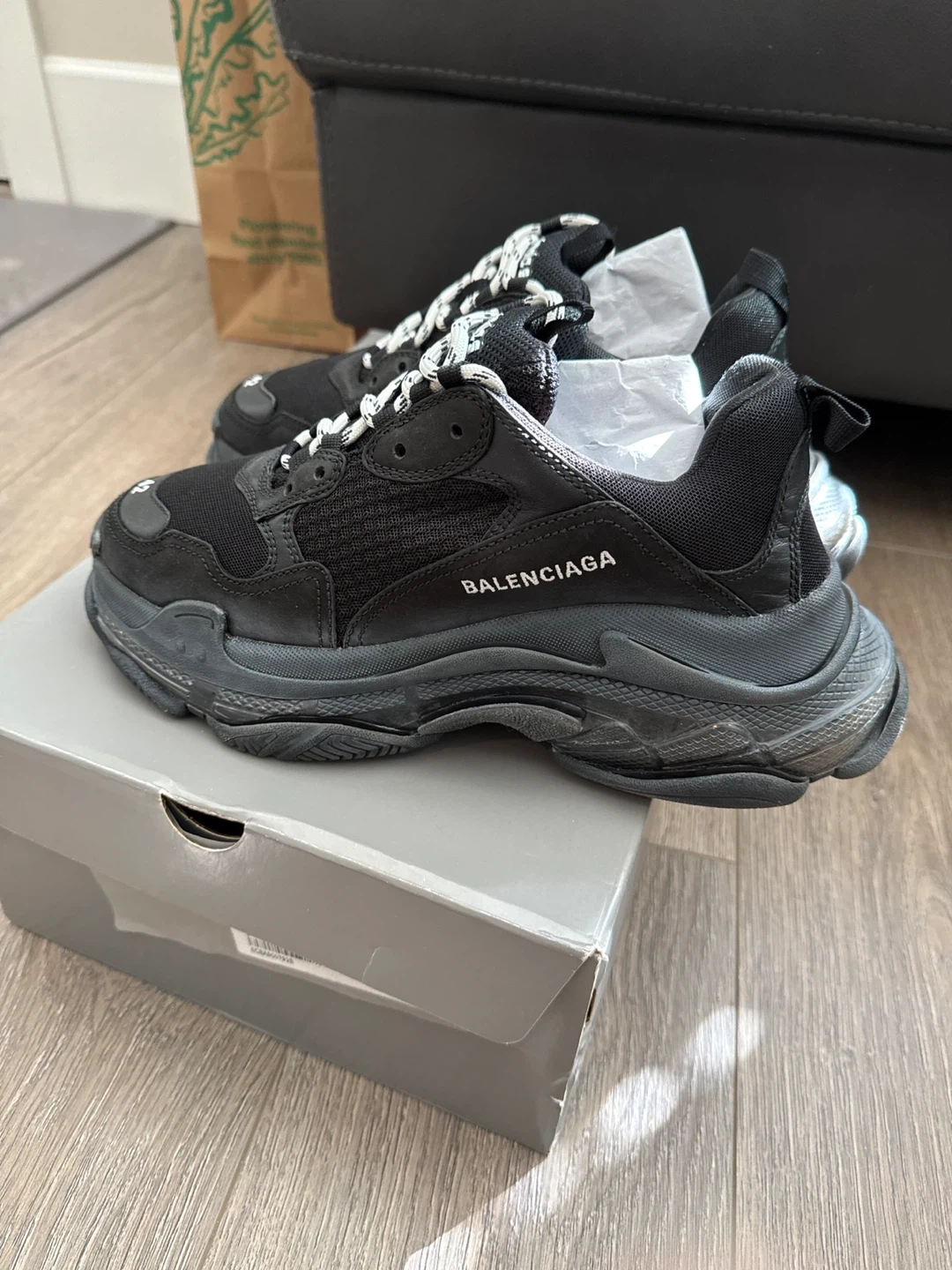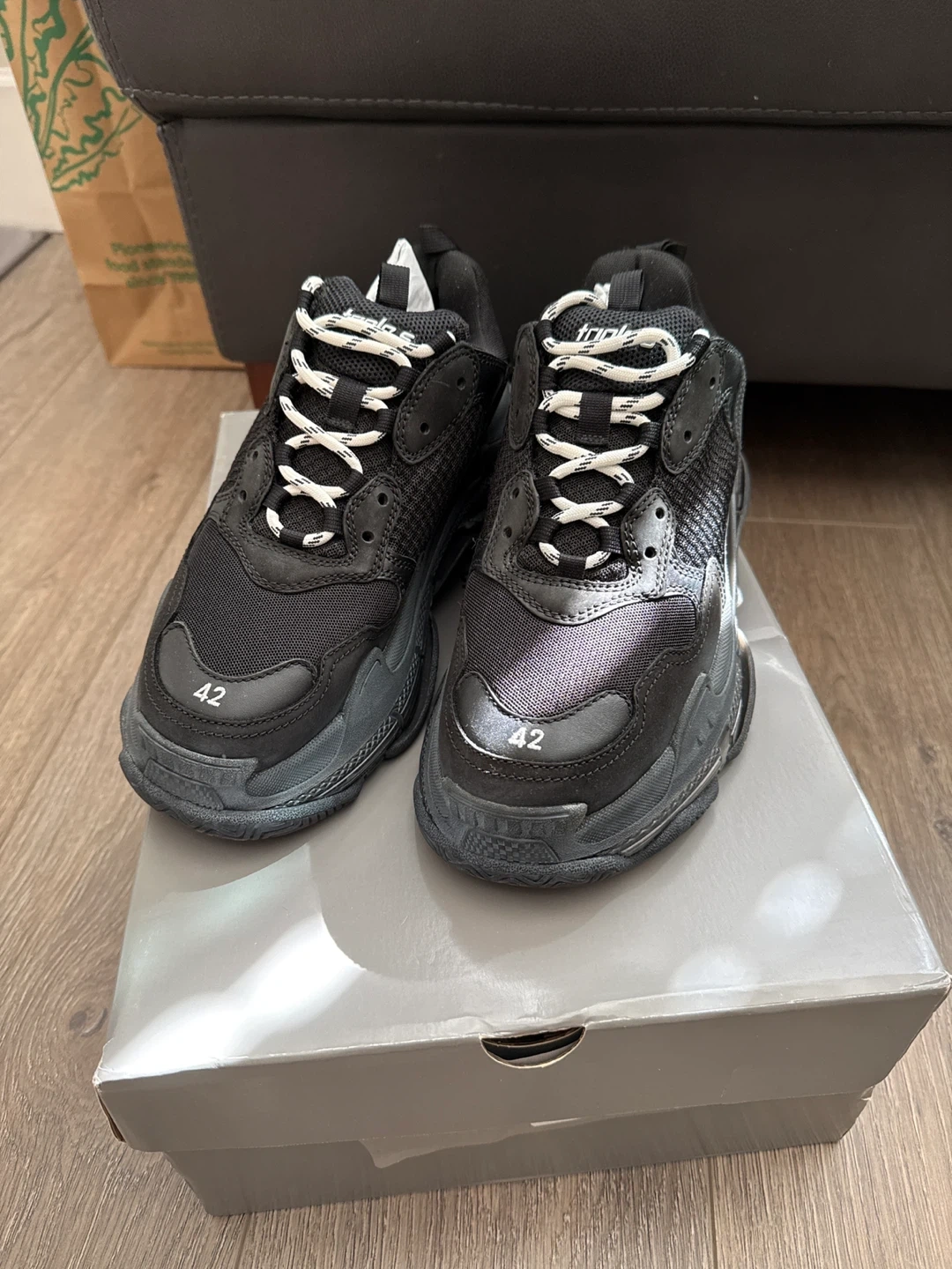 Buy & SellBalenciaga Triple S Sneakers - Black - Size 42Balenciaga Triple S Sneakers - Black - Size 42$475Black Balenciaga Triple S sneakers. These shoes feature a size 42 designation. They come with the original box.SizeEur42BrandBalenciagaWHERE TO MEETPrice StreetView MapSELLERverifiedCCGarden Village600 reviews0 chats·1 favorites·37 viewsSEND CHAT TO SELLERHi CC! I’m interested in your listing.Hi CC! I’m interested in your listing.Get the Karrot app to chatSign In to chat