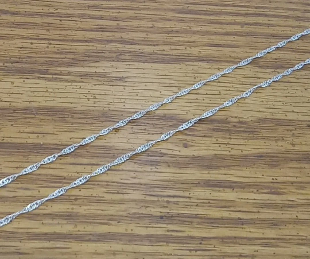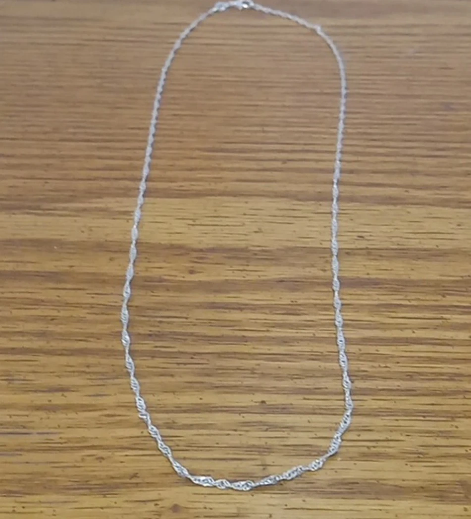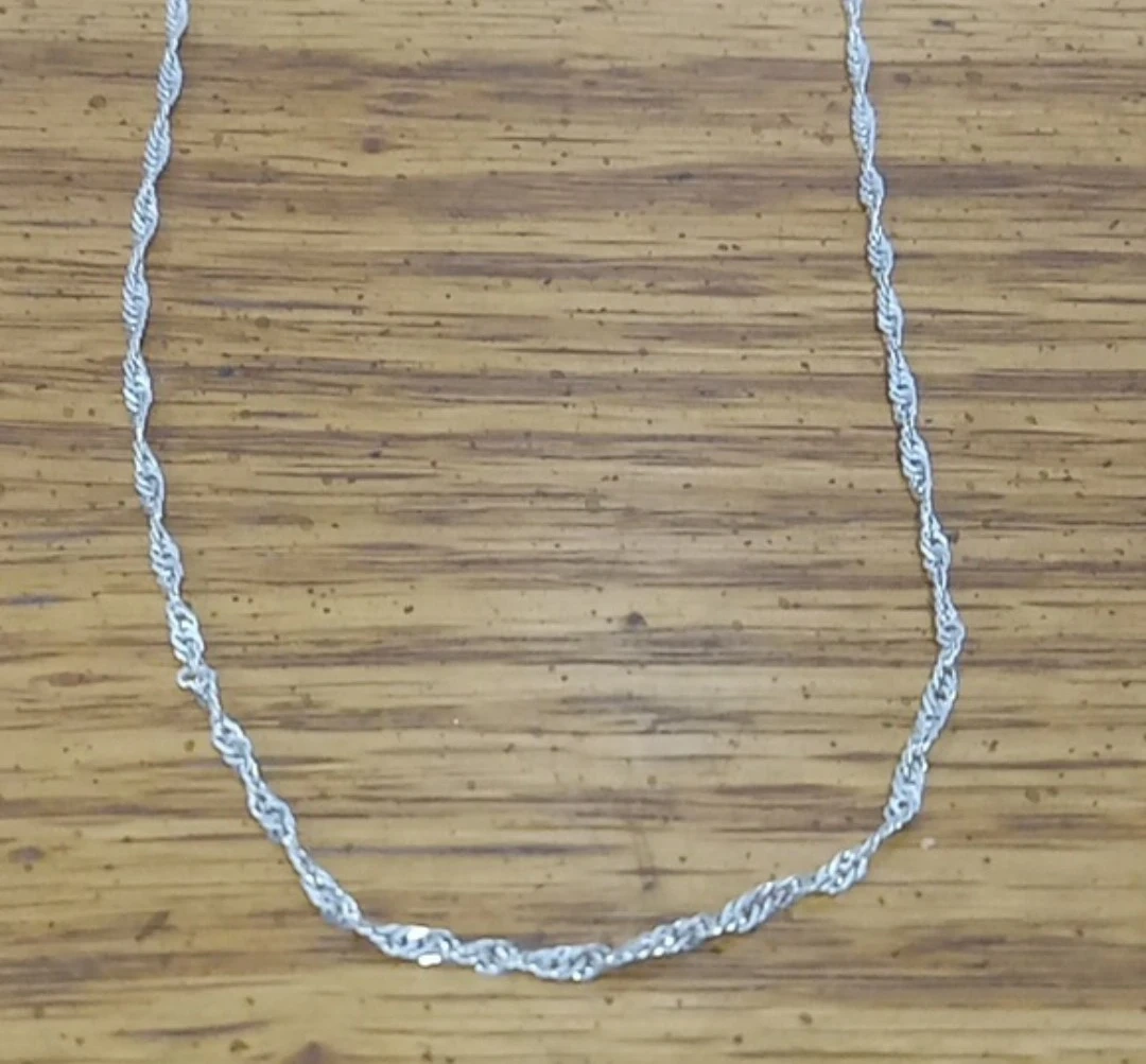 Buy & SellSterling Silver wave chainSterling Silver wave chain$15A sterling silver wave chain Flat twisted links to create a wave design around the chain 2mm width 22" length (Also available in 24") Marked 925 ConditionNewWHERE TO MEETCheck LocationView MapSELLERverifiedDylanLakeview833 reviews1 chats·0 favorites·14 viewsSEND CHAT TO SELLERHi Dylan! I’m interested in your listing.Hi Dylan! I’m interested in your listing.Get the Karrot app to chatSign In to chat