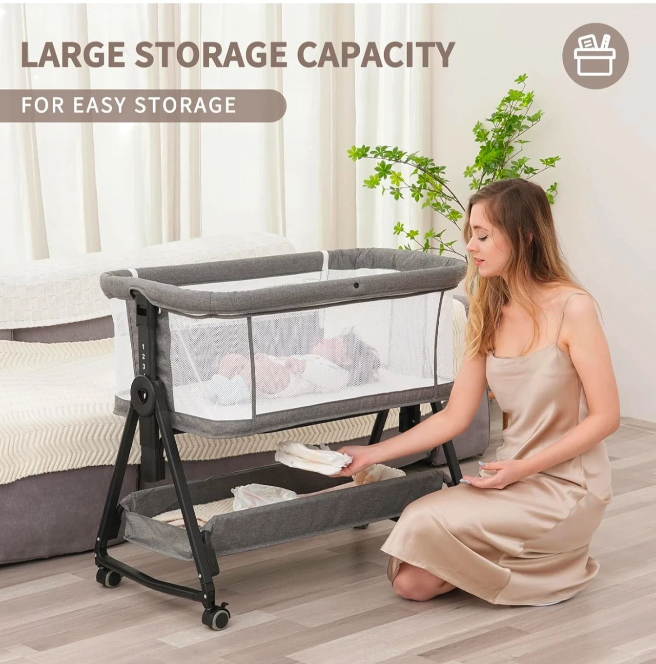 3-in-1 Design: Functions as a standalone bassinet, a bedside sleeper (attaches to the parent bed), and a portable cradle.