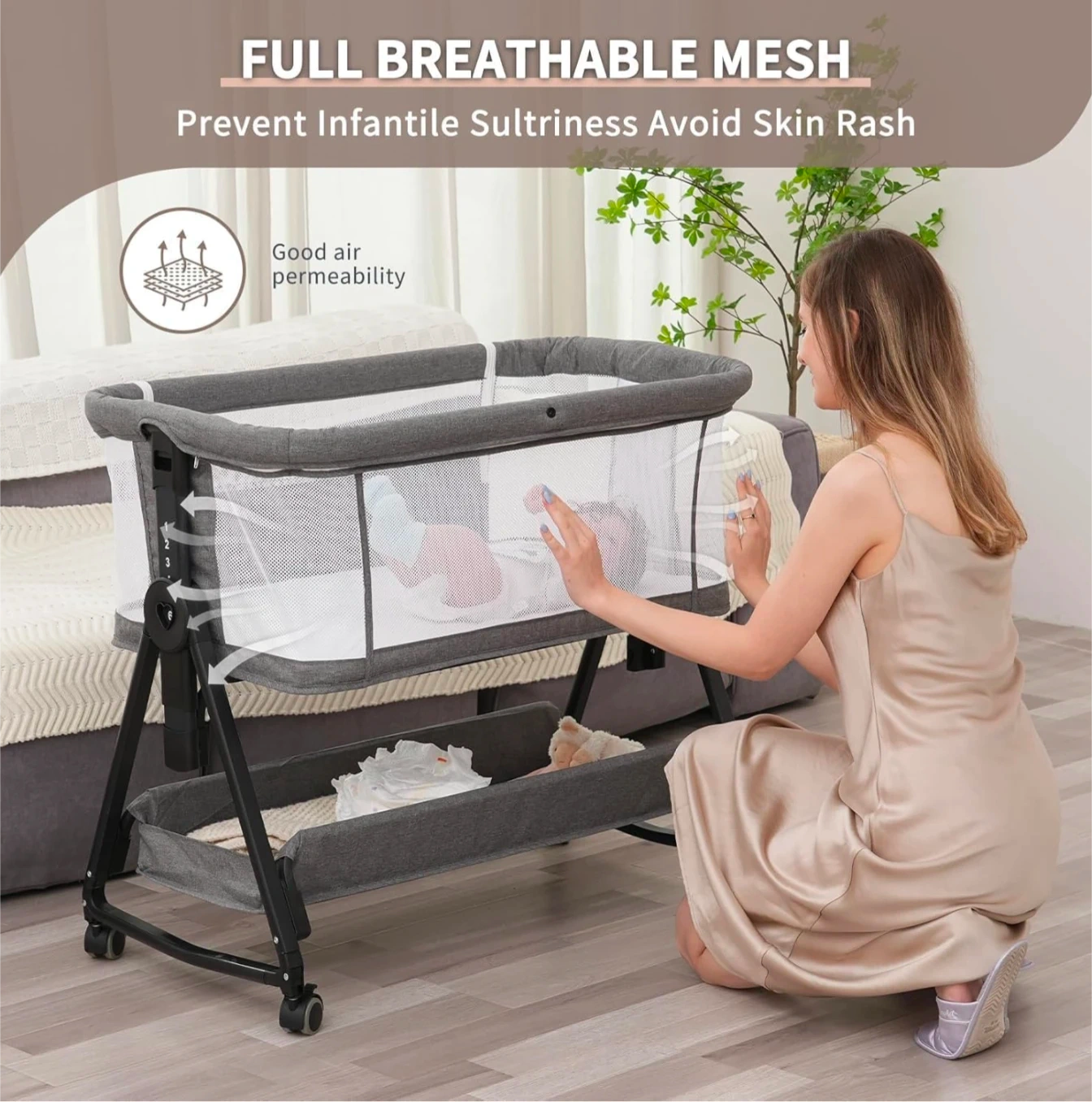 Breathable Mesh Sides: Provides great airflow and allows you to see your baby clearly from any angle.