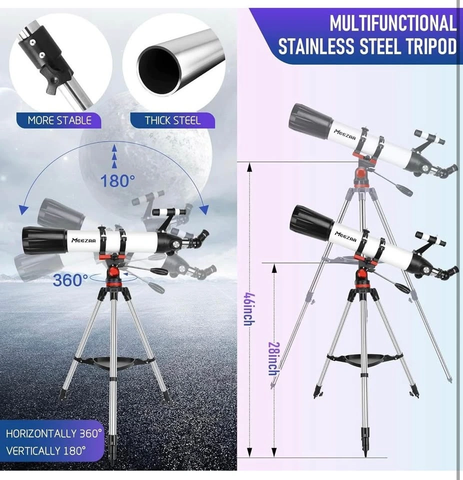 Interested in astronomy or exploring the night sky? This MEEZAA telescope is a great choice for kids, adults, and beginners. It's designed to offer quality, performance, and a great user experience. Perfect for stargazing, moongazing, viewing city nightscapes, bird watching, and outdoor scenery.