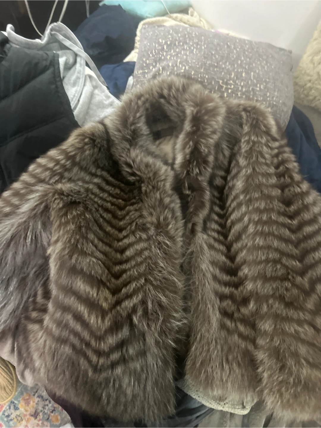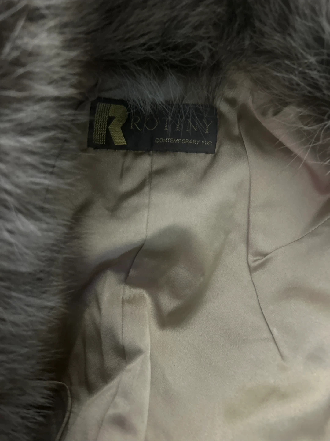 This Rotiny coat is made from genuine fur. It's a stylish piece for cooler weather. The lining is a smooth satin material.