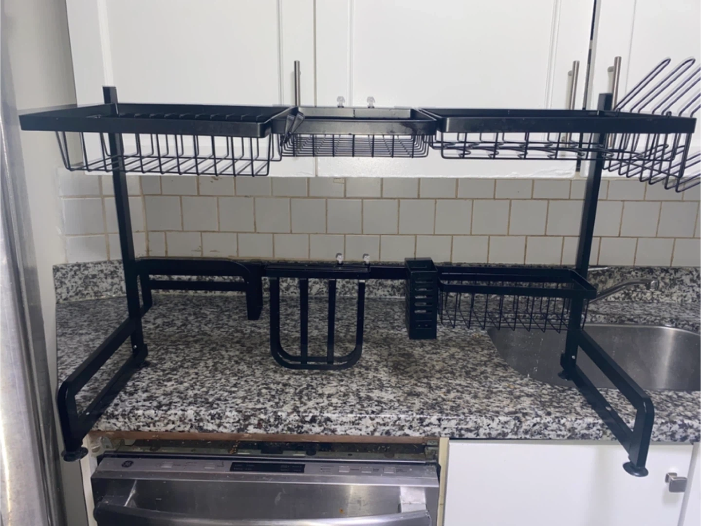 Black Over-the-Sink Dish Rack with Multiple Baskets