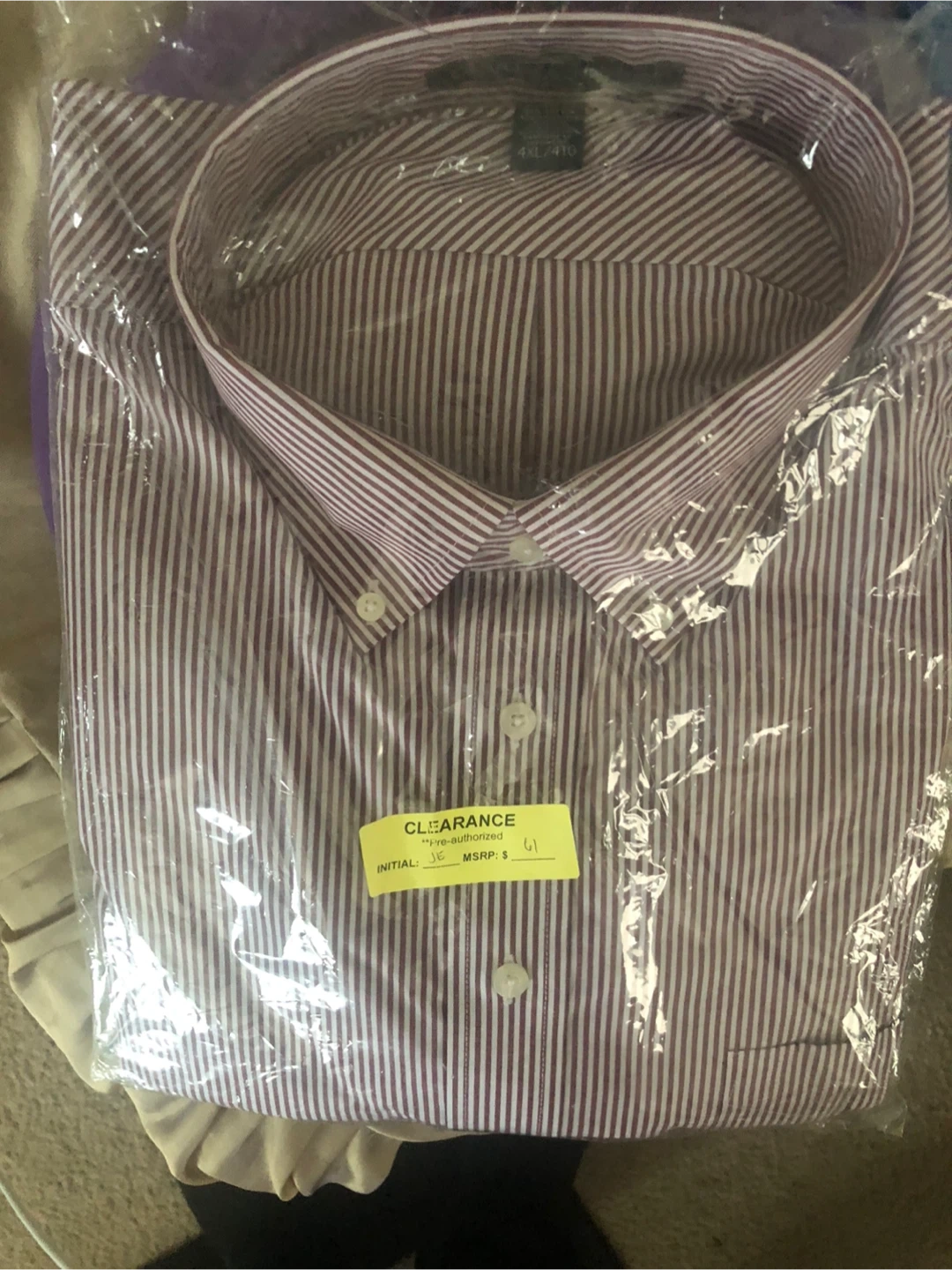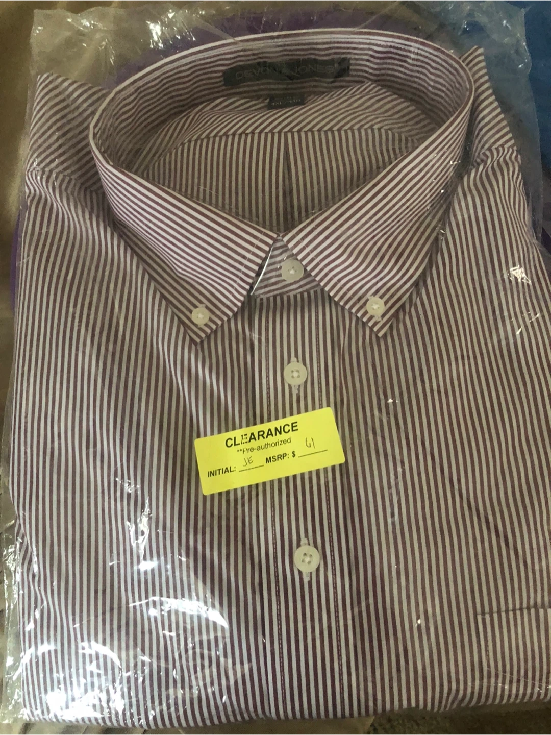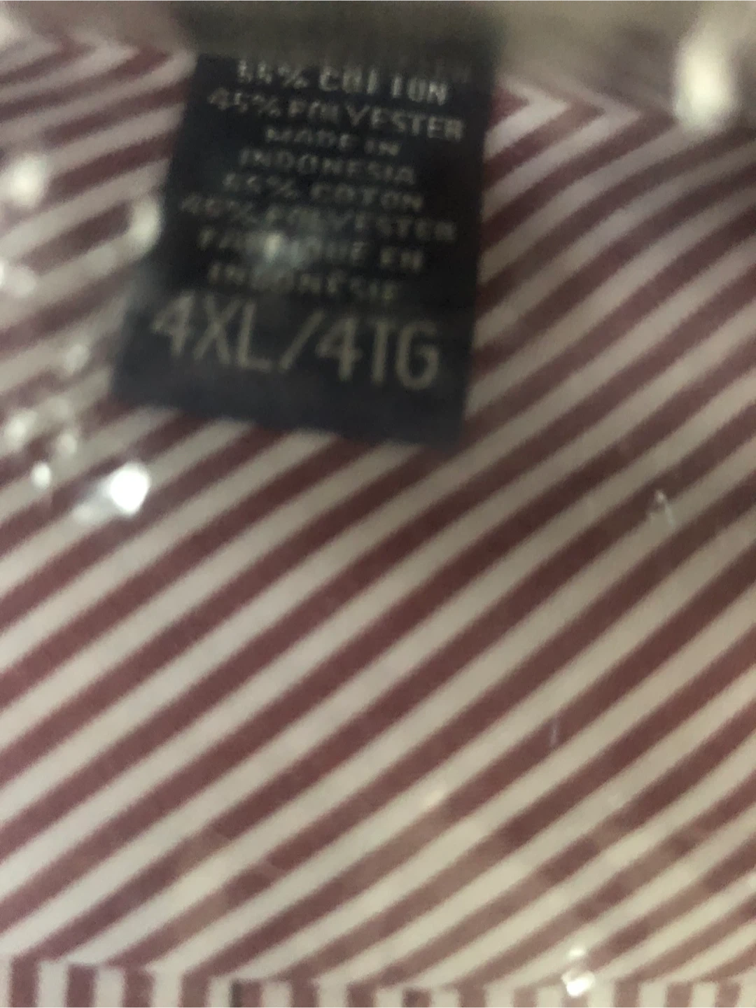 A SEVEN JONES men's button-down shirt in size 4XL. It's made with 55% cotton and 45% polyester. This shirt features a classic striped pattern.