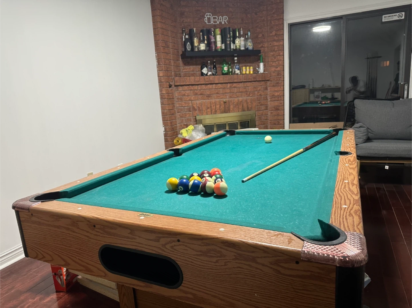 This is a Cooper brand pool table with a full set of billiard balls and cues. It's perfect for a games room or basement. Comes with cue rack and triangle. Selling for 250 open to negotiation provided there is a valid offer