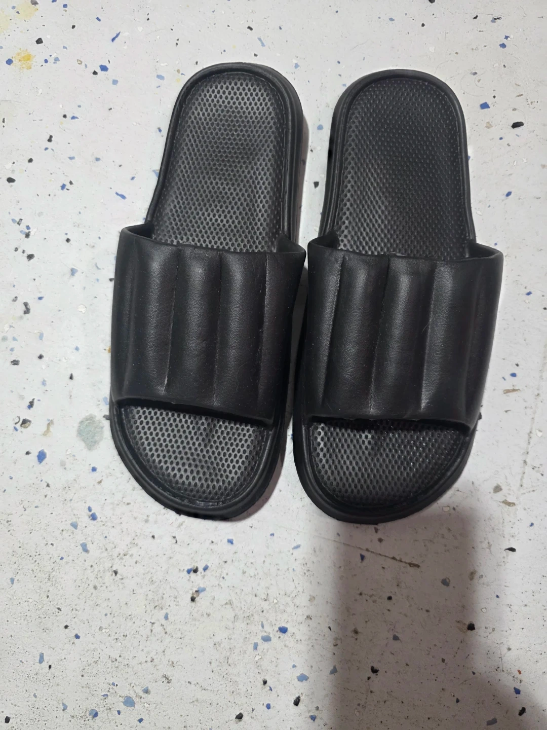 Black slides perfect for everyday wear. These slides are made of a durable synthetic material and feature a comfortable footbed. Size is 40-41.