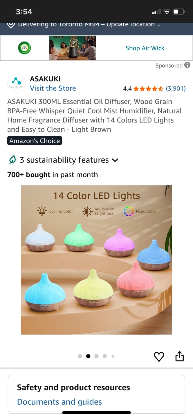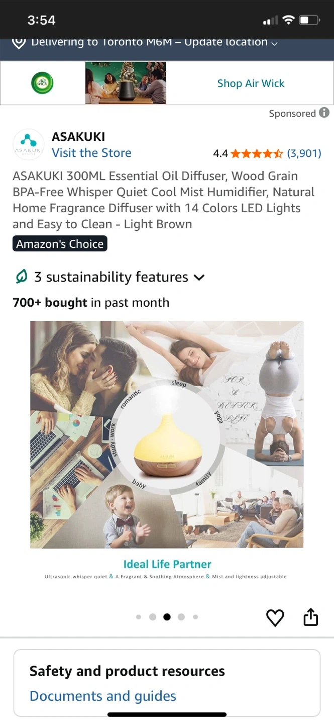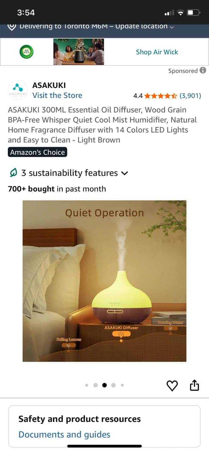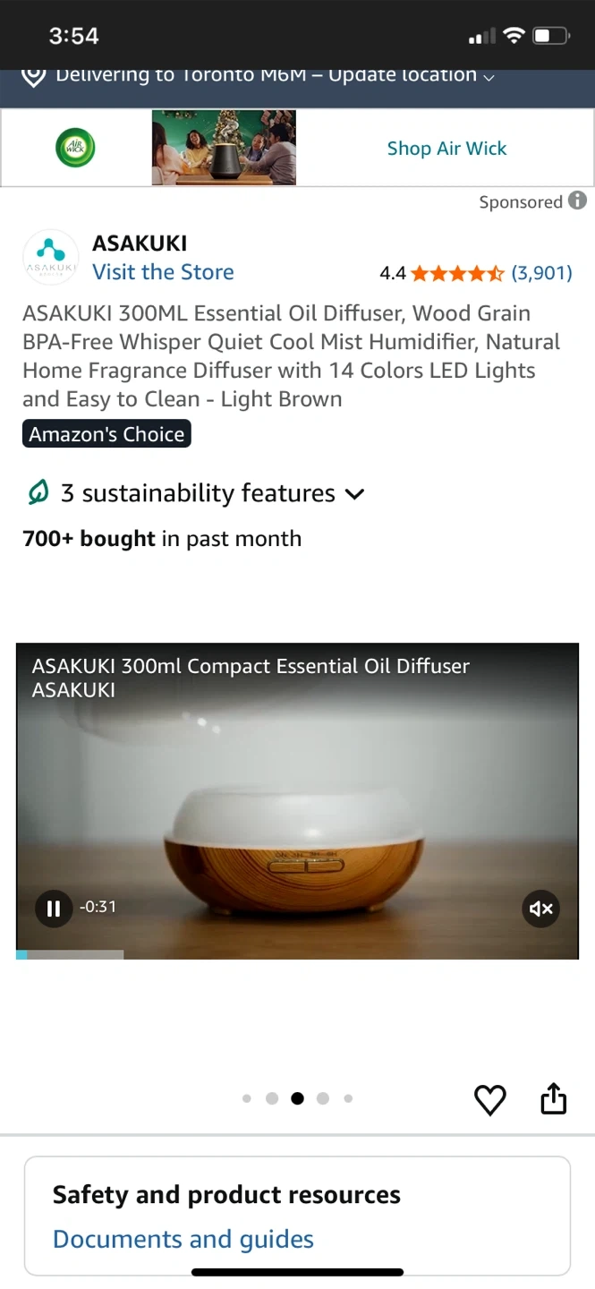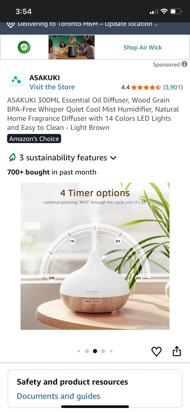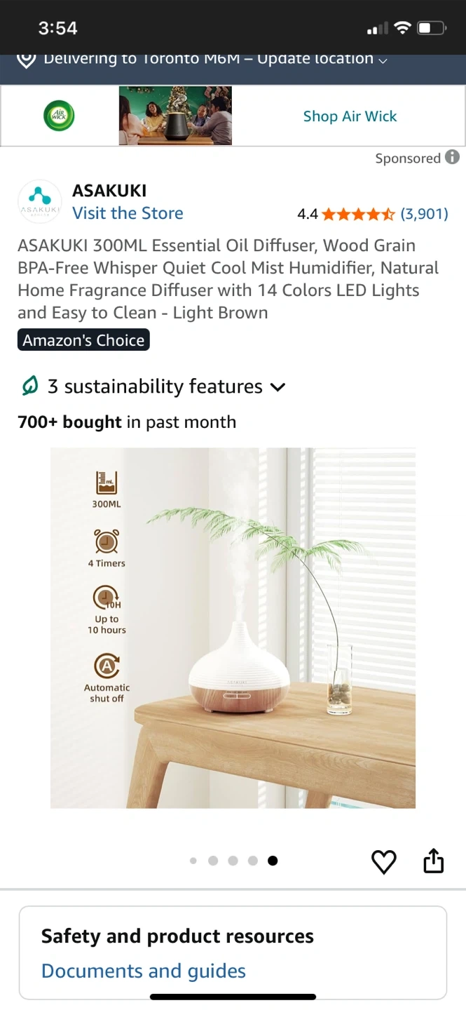 This ASAZUKI essential oil diffuser has adjustable timer settings and comes with a power adapter. It's designed to humidify and fragrance your home. The unit features multiple timer options for convenience.