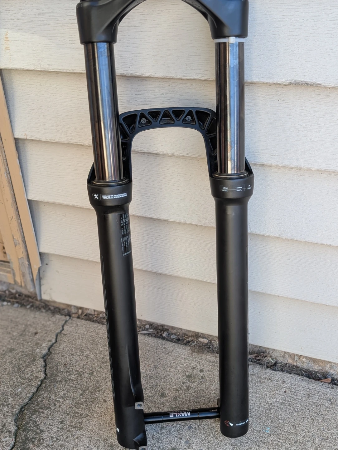 RockshoX recon 140mm 29er front fork. Tapered head tube, 15mm bolt through 110mm spacing.Used less than 12 hours riding time. 7" steerer tube length. Like new condition. can even fit for you for the full asking price. No Scratches on stanchions asking 200 Or best offer. Low ballers will be ignored