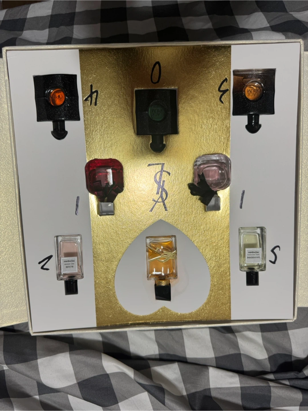 This set includes five Yves Saint Laurent miniature perfumes. It's a great way to try out different scents. Includes original packaging.