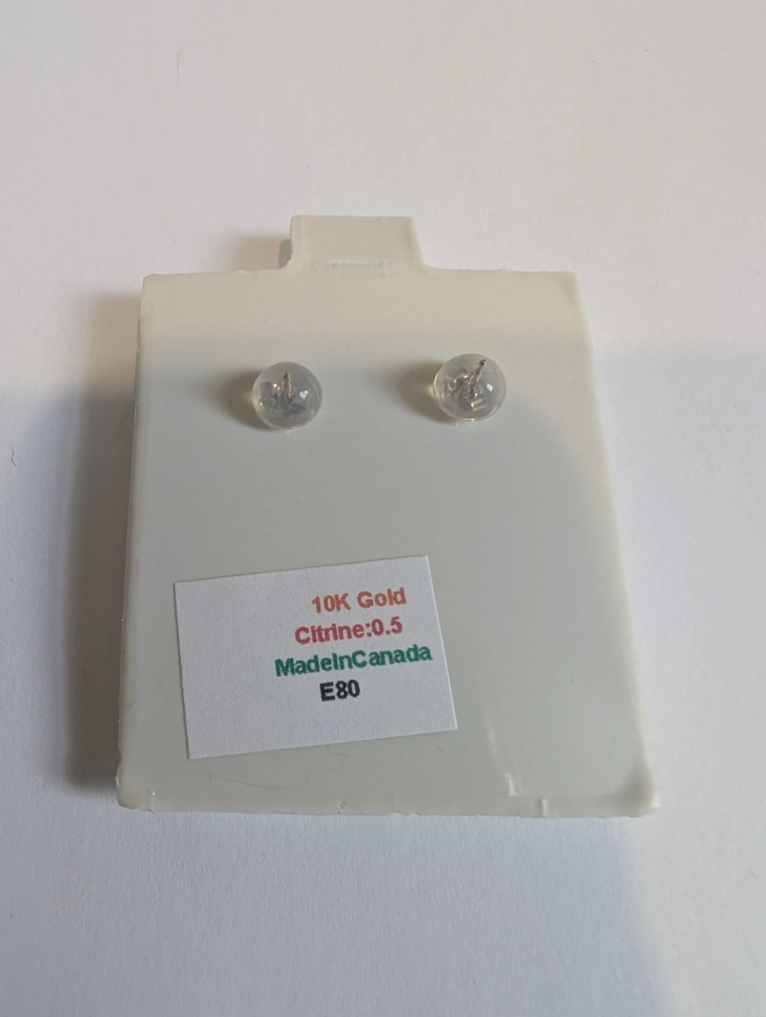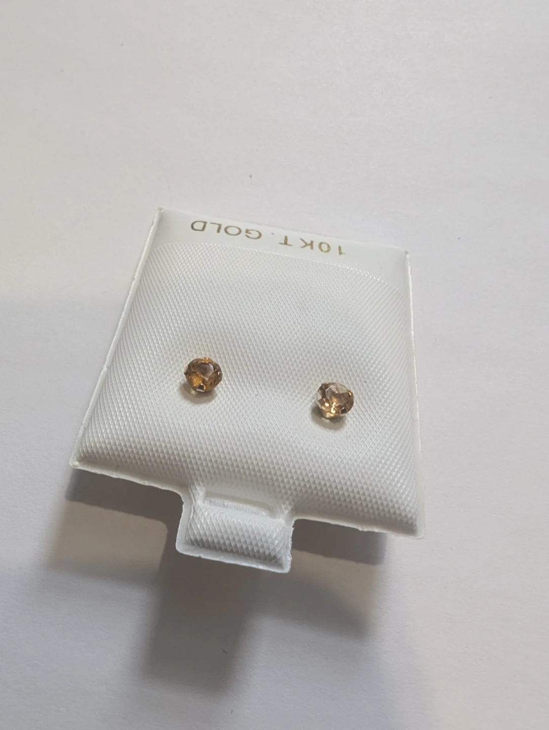 Brand new 10kt yellow gold natural Citrine gemstone earrings for sale. Stud earrings, 0.5ct karat natural citrine gem stone, made in Canada, November birthstone, $75 FIRM.