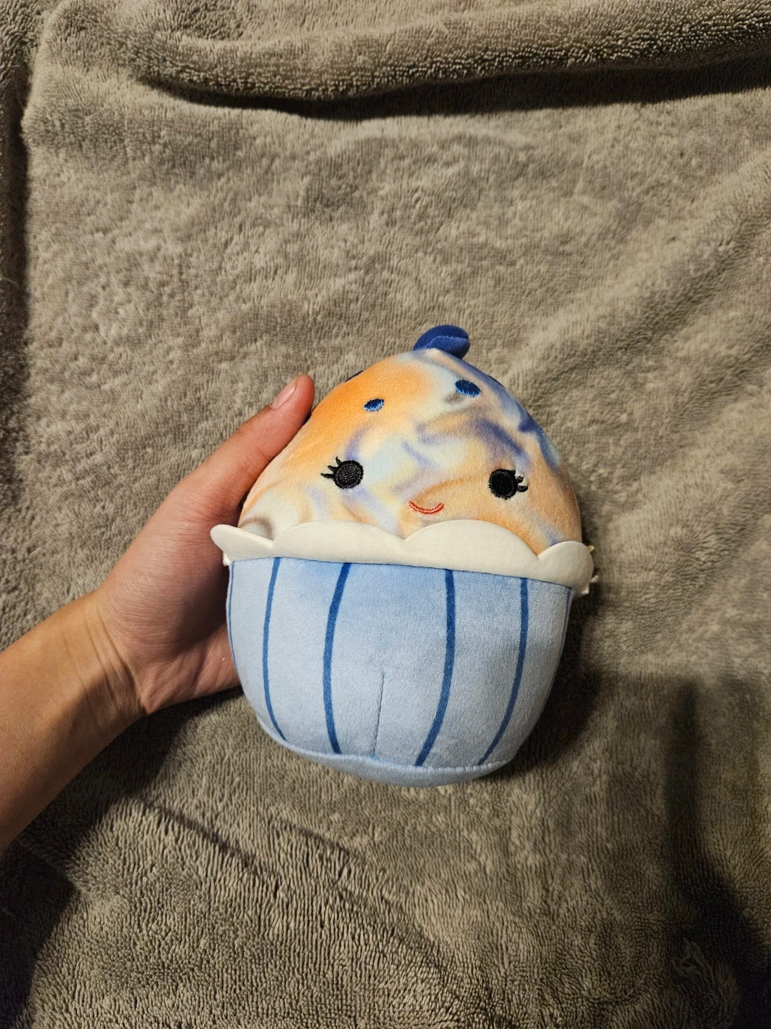 This is a cute Squishmallow cupcake plush toy. It's soft and cuddly, perfect for any fan. Measures approximately 7 inches tall. Maudi the blueberry muffin