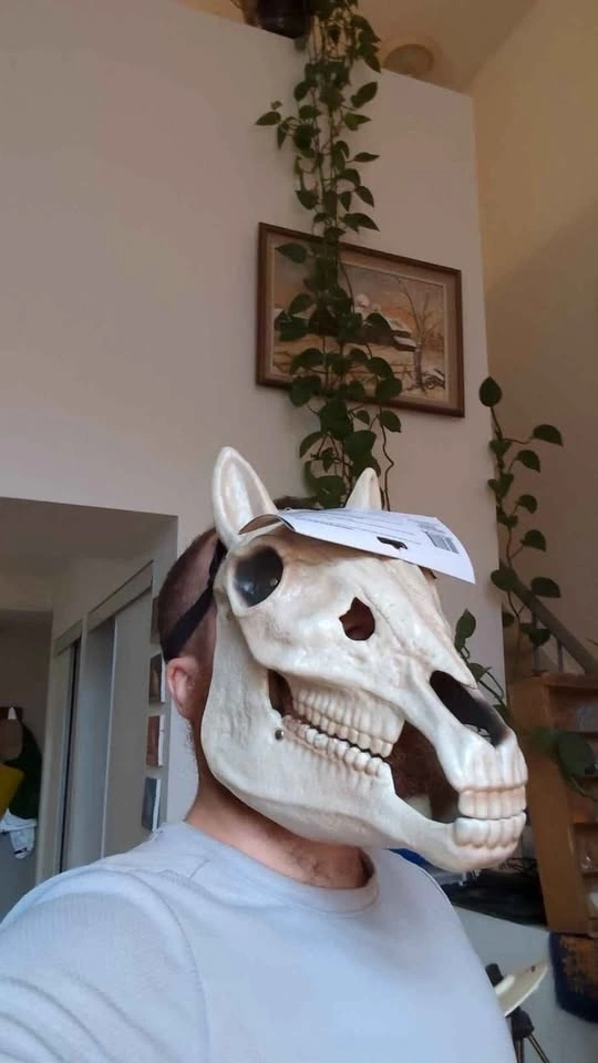 Pickup near Jarvis & Wellesley. Never worn except to take the photo for this ad. Still has tags on it. Elastic jaw so you can still eat with it on I guess?? You can see through the nose holes. Bought it last year but didn't end up using it for my costume.