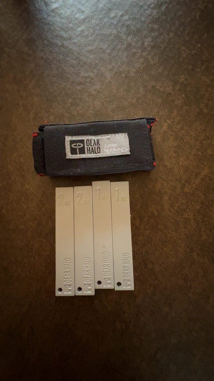 This is a Gear Halo Junior Training set. It includes a pouch and four weights: two 2 oz and two 1 oz. These weights are designed for training.