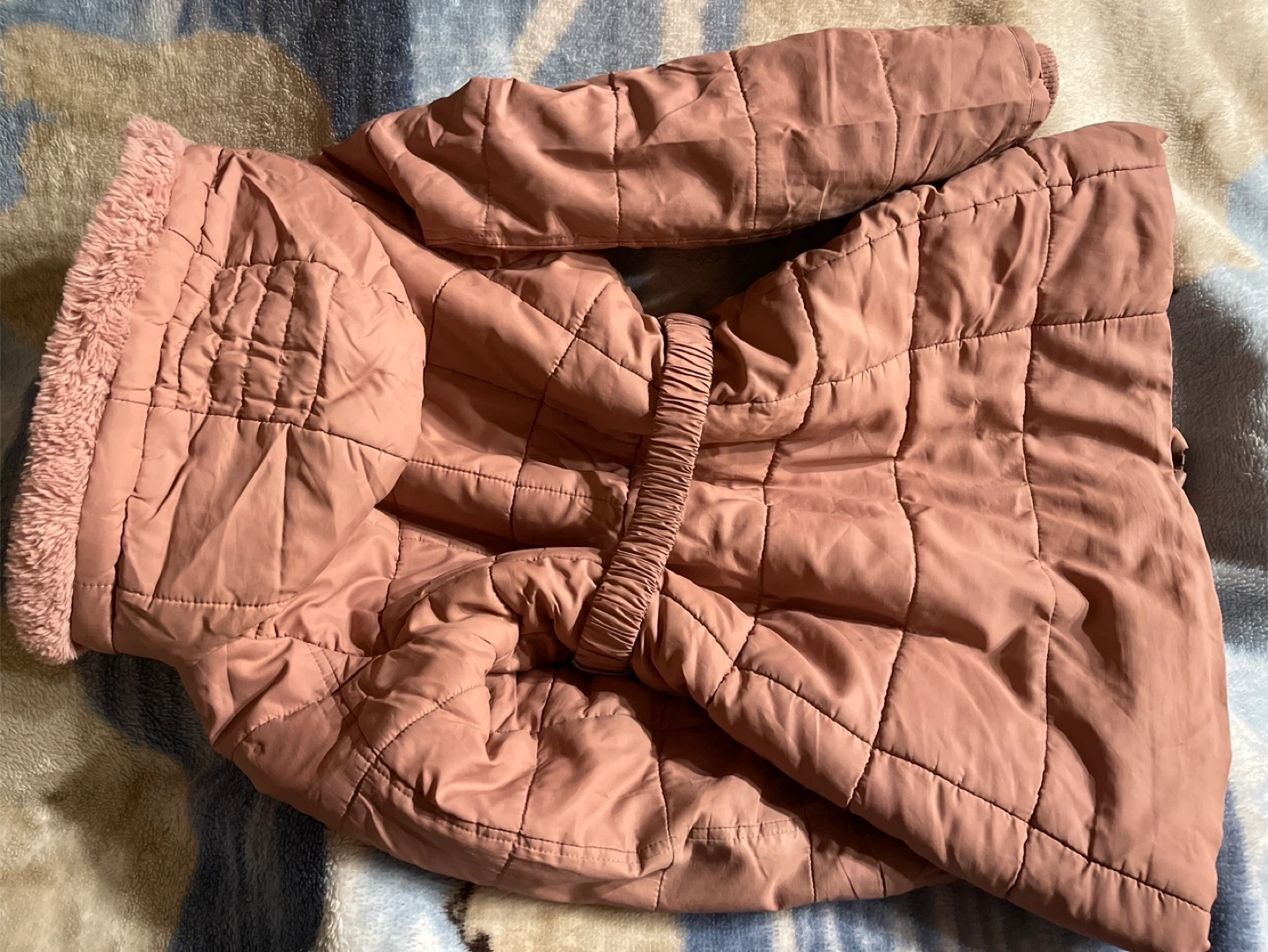 Pink Quilted Winter Coat with Fur-Lined Hood