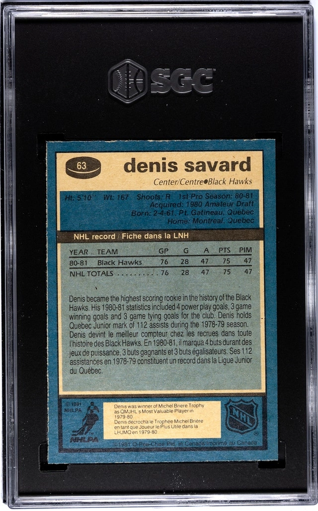 1981-82 O-PEE-CHEE OPC - Denis Savard (R) - #63 - SGC 7.5