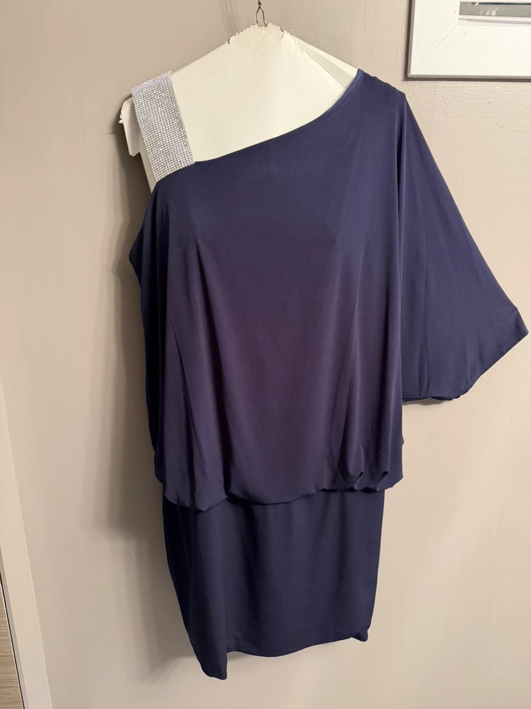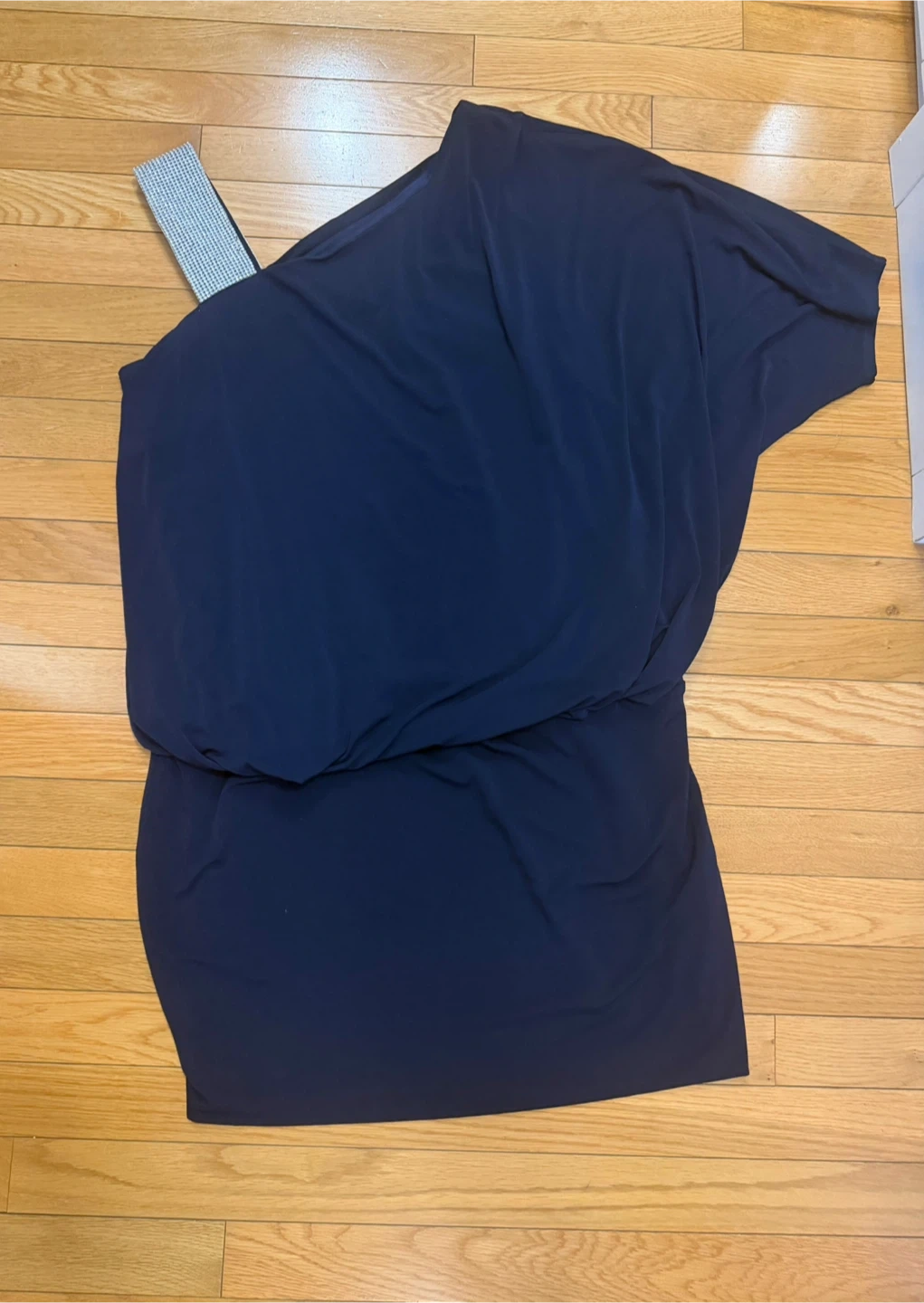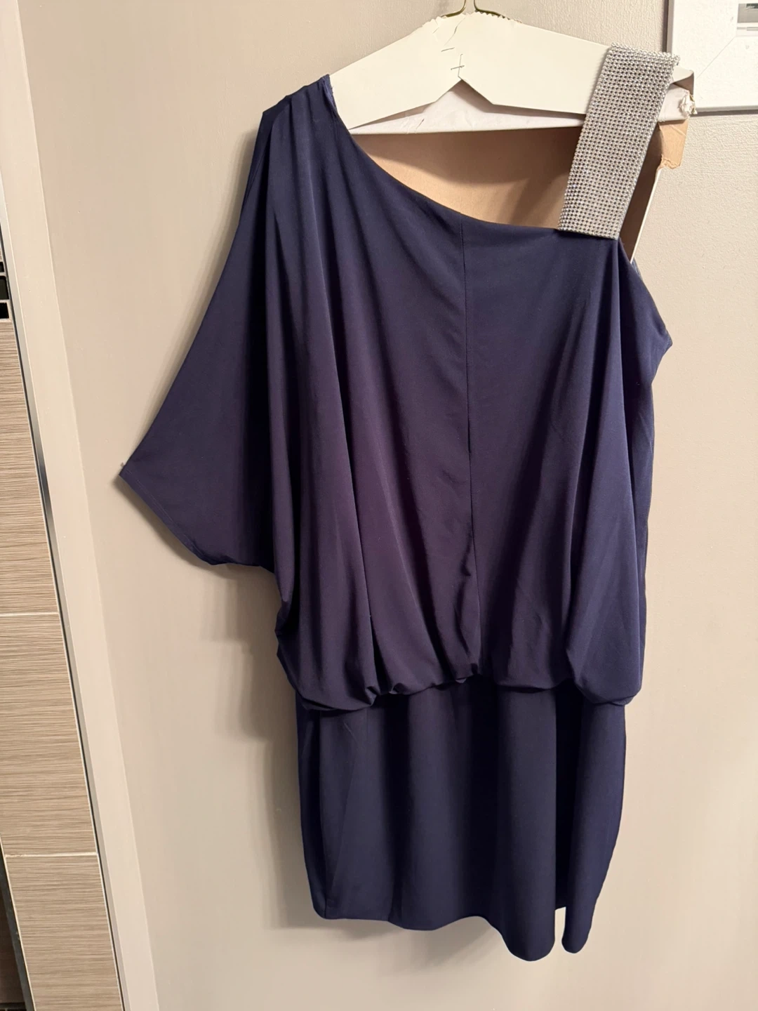 Navy One Shoulder Dress with Blingy Strap