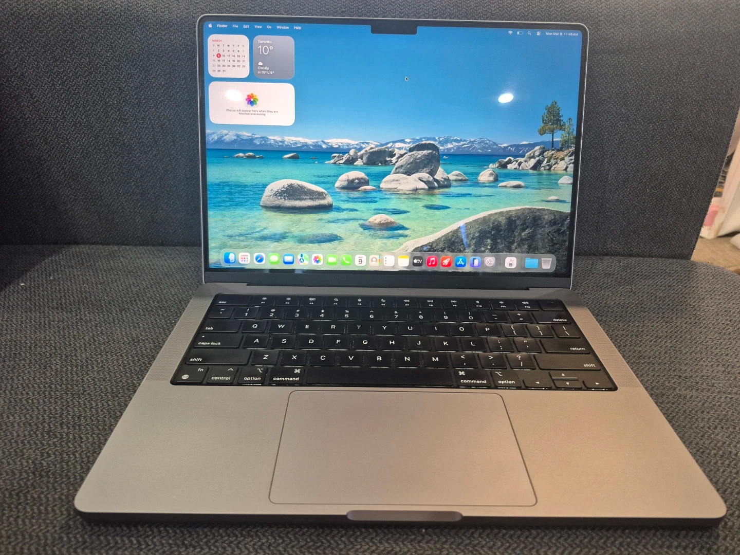 This 2021 MacBook Pro has a 14-inch Liquid Retina XDR display. It's powered by an Apple M1 Pro chip with 16 GB of memory. Storage is 500 GB. Comes with charger