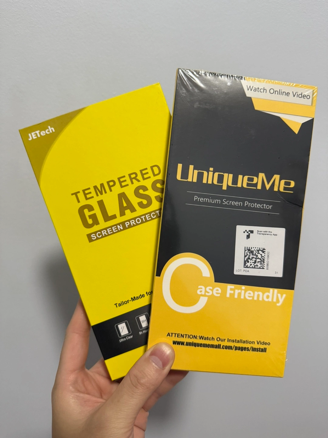 10Two new screen protectors. One JETech tempered glass and one UniqueMe premium screen protector. Case friendly. Ultra clear and 9H hardness.
