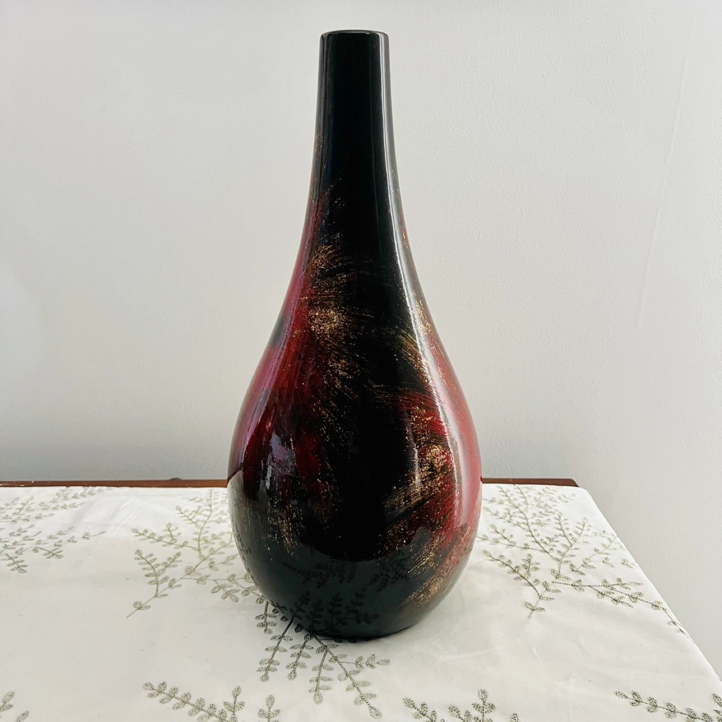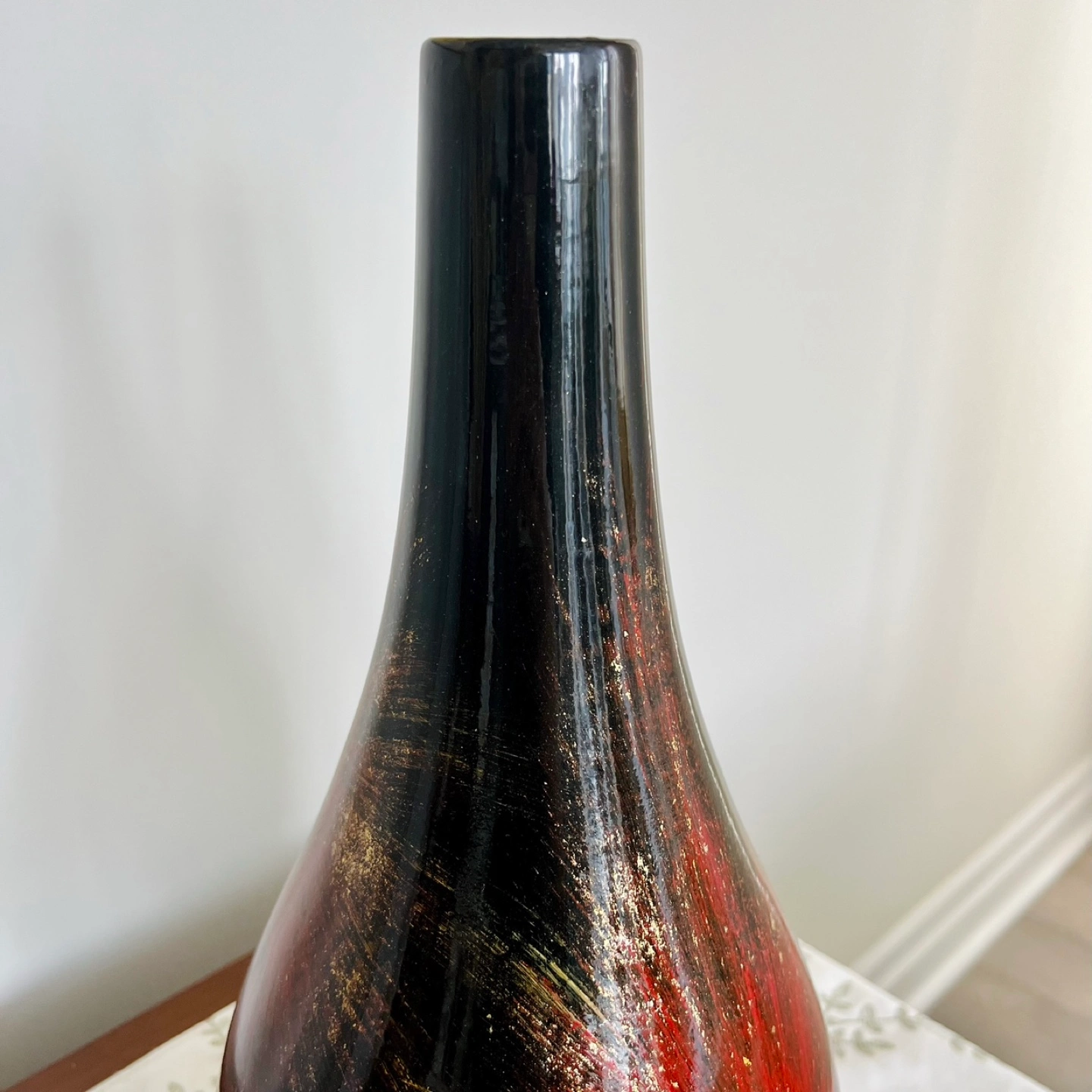 Minimalist black with metallic gold confetti and red accents flower vase