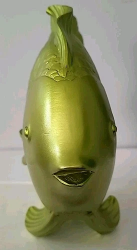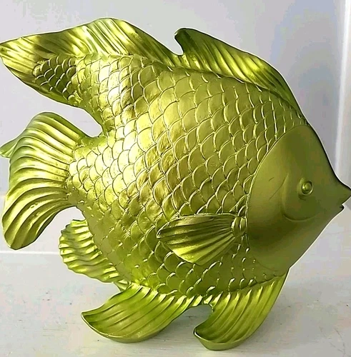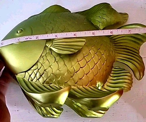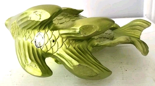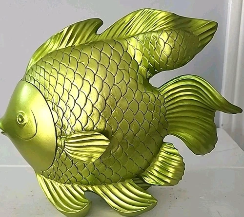 Large Goldfish Sculpture Decor 10x8in Resin Metallic Green Fish