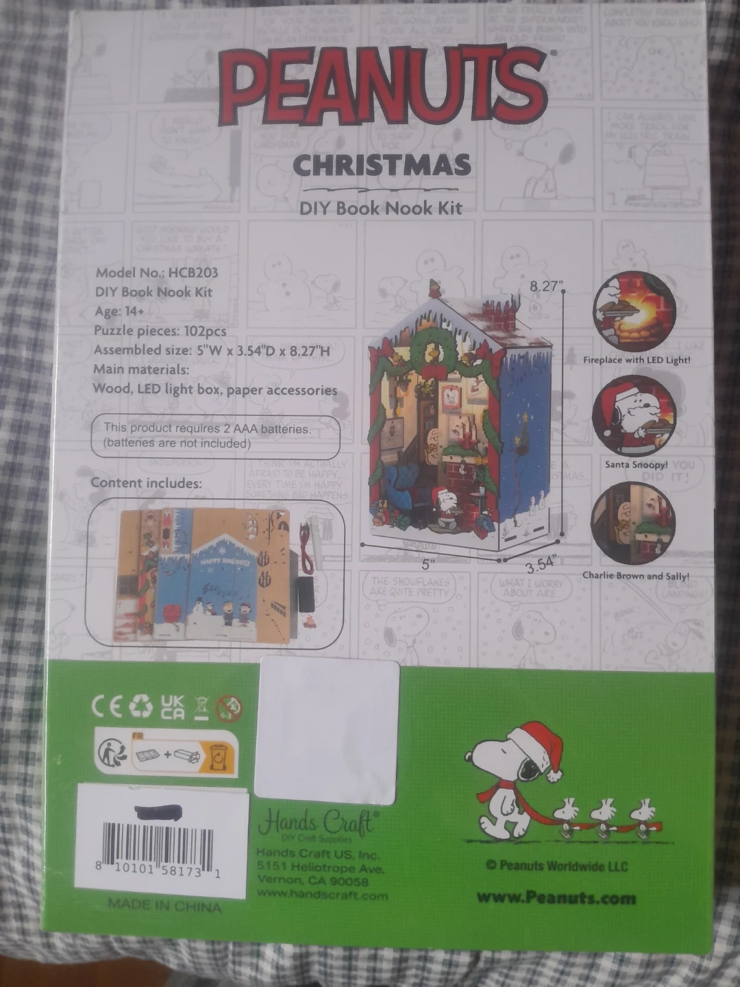 Build your own festive Peanuts Christmas scene with this DIY Book Nook Kit. It features 102 puzzle pieces and includes wood, LED light box, and paper accessories. Requires 2 AAA batteries (not included).