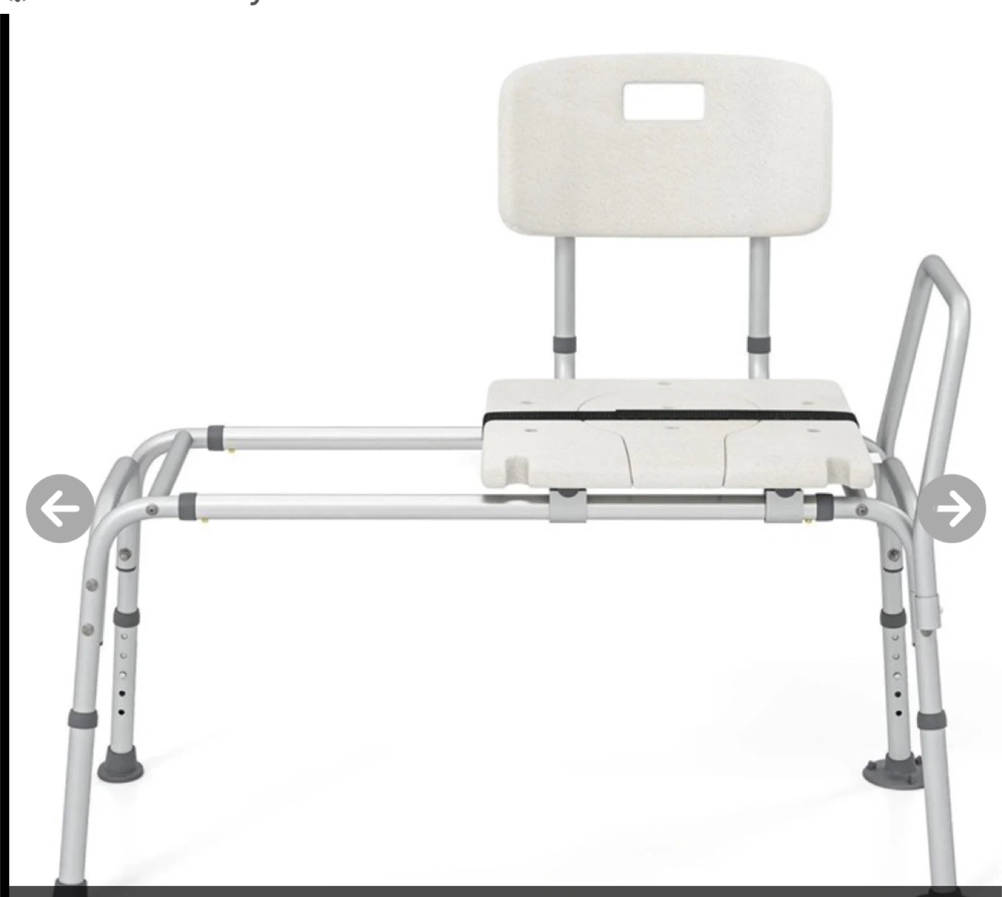 This bath safety shower chair provides a stable and comfortable seating option in the tub. It features a padded seat and backrest for comfort, along with supportive armrests. The height of the legs is adjustable to fit your needs. It's designed for added stability in wet environments.