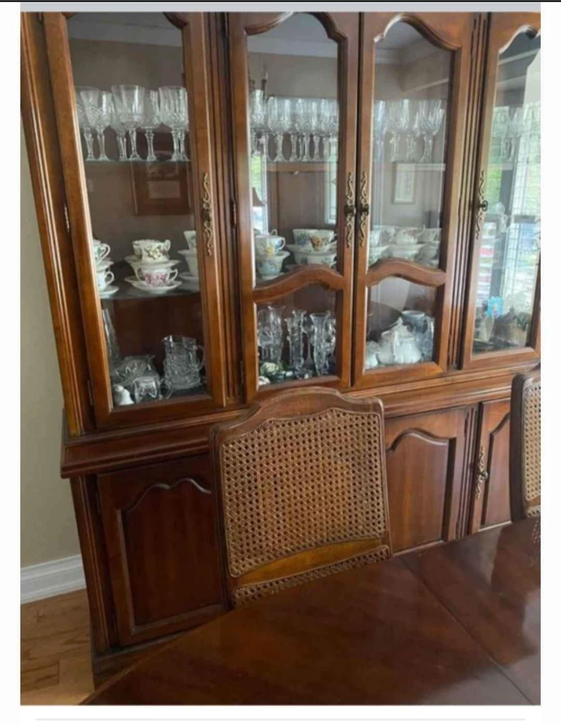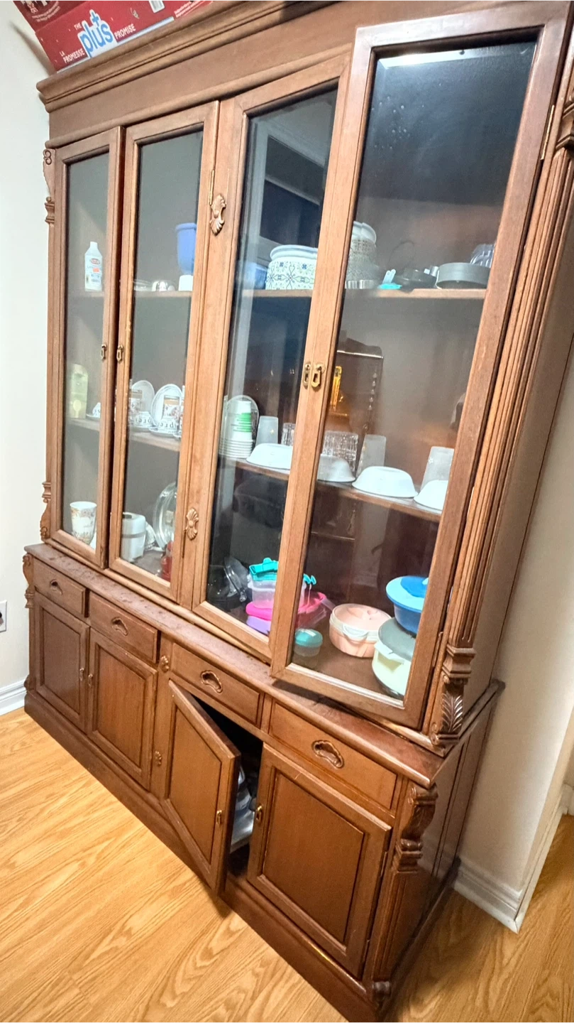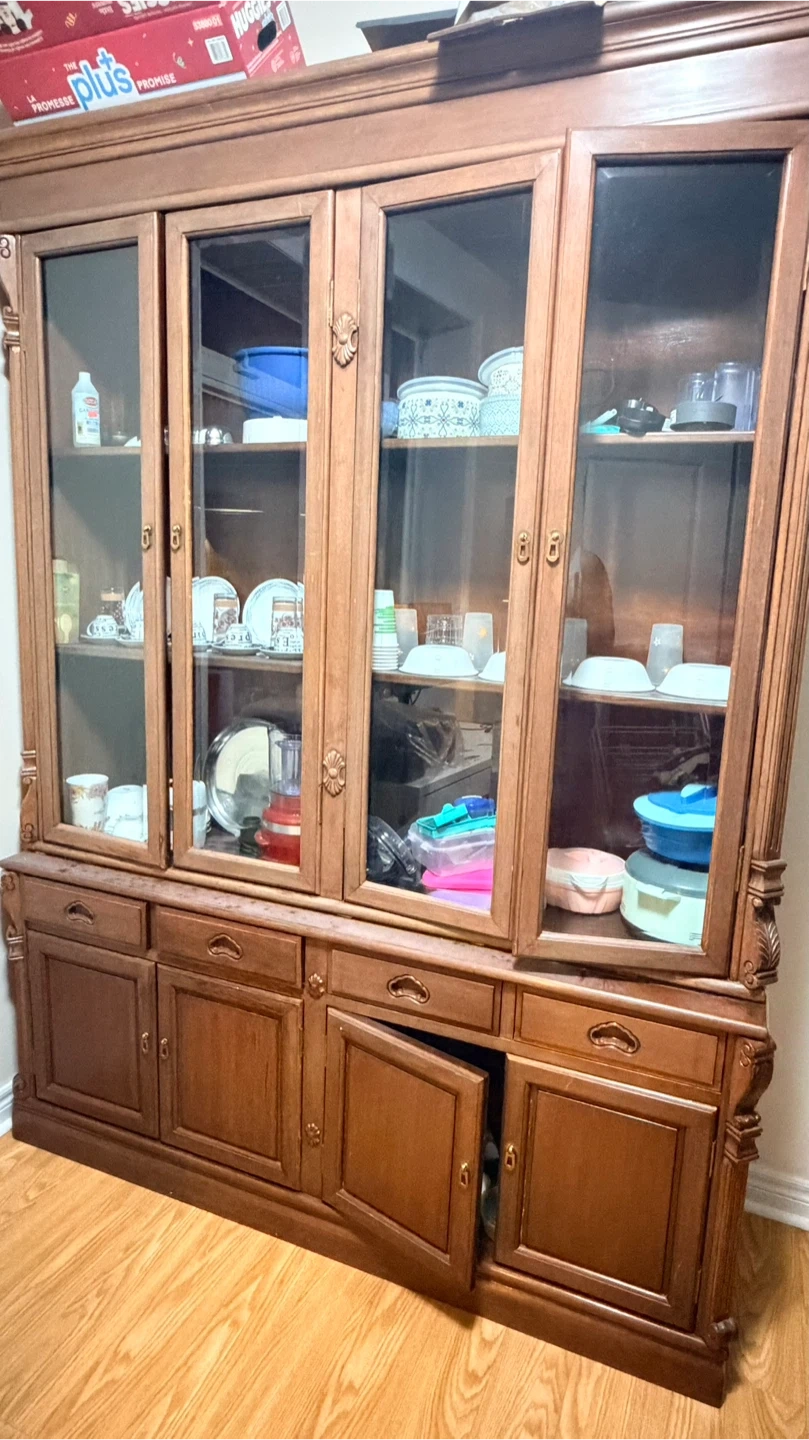 Solid wood china cabinet/Hutch featuring glass-fronted doors and ample shelving.