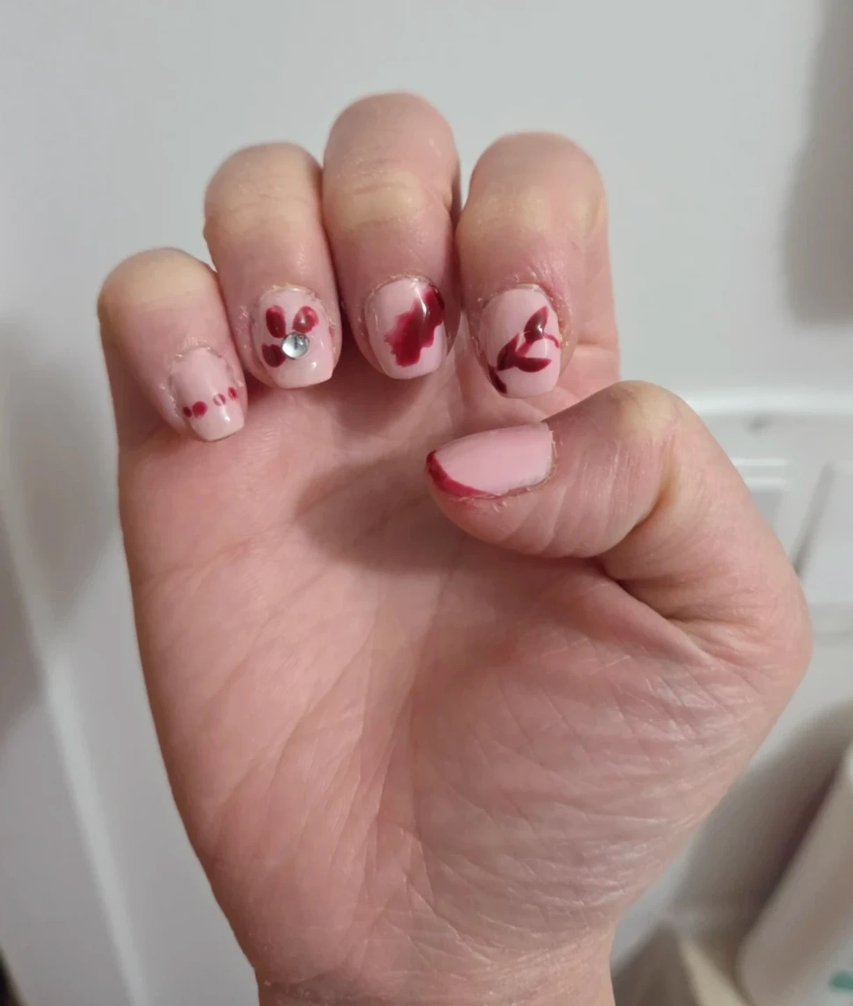 All these were done on my own hand and I'm right handed so some designs on my right hand are a little flimsy ๐