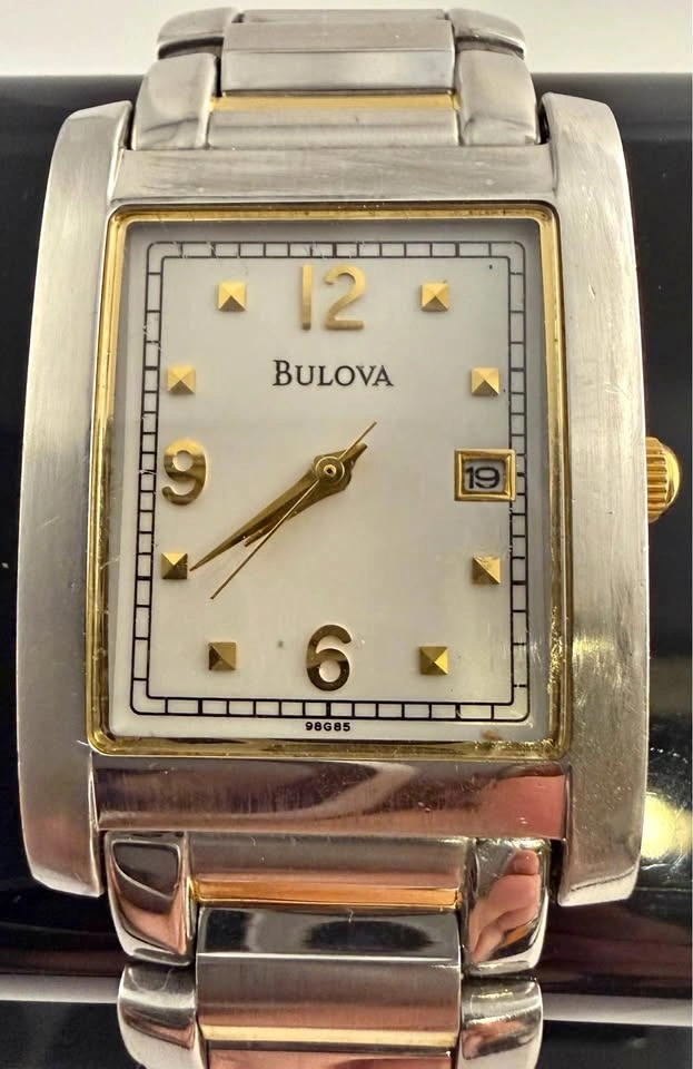 Rare Bulova 98G85 Silver Dial Gold Accents Quartz Men's Watch