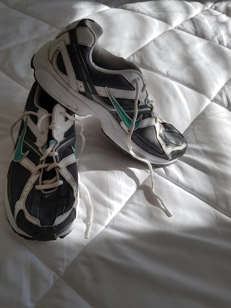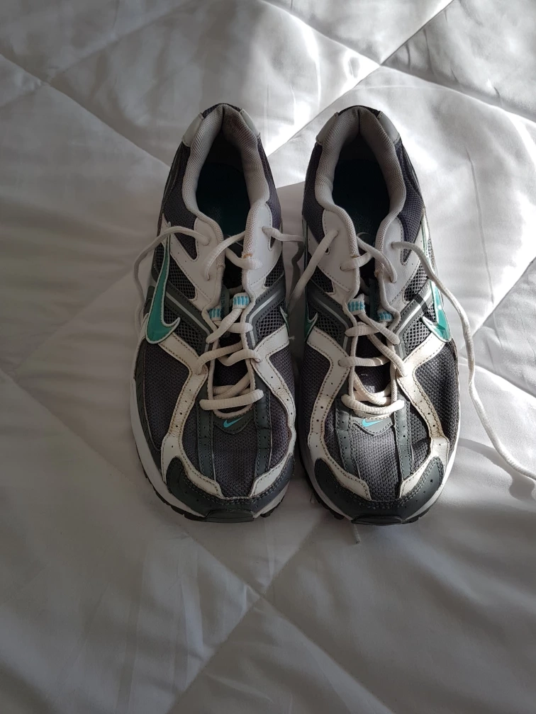 Grey and teal Nike running shoes. women size 10. Please also check out my other listings on this account. This is a no pet/ smoke home. Pick Up Cochrane, Alberta.