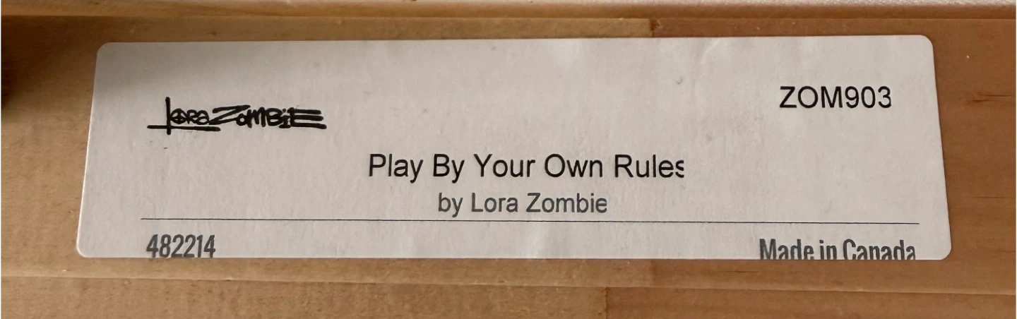This is a Lora Zombie canvas print titled "Play By Your Own Rules". It's ready to hang and made in Canada. This unique piece adds a pop of colour and style to any room!
