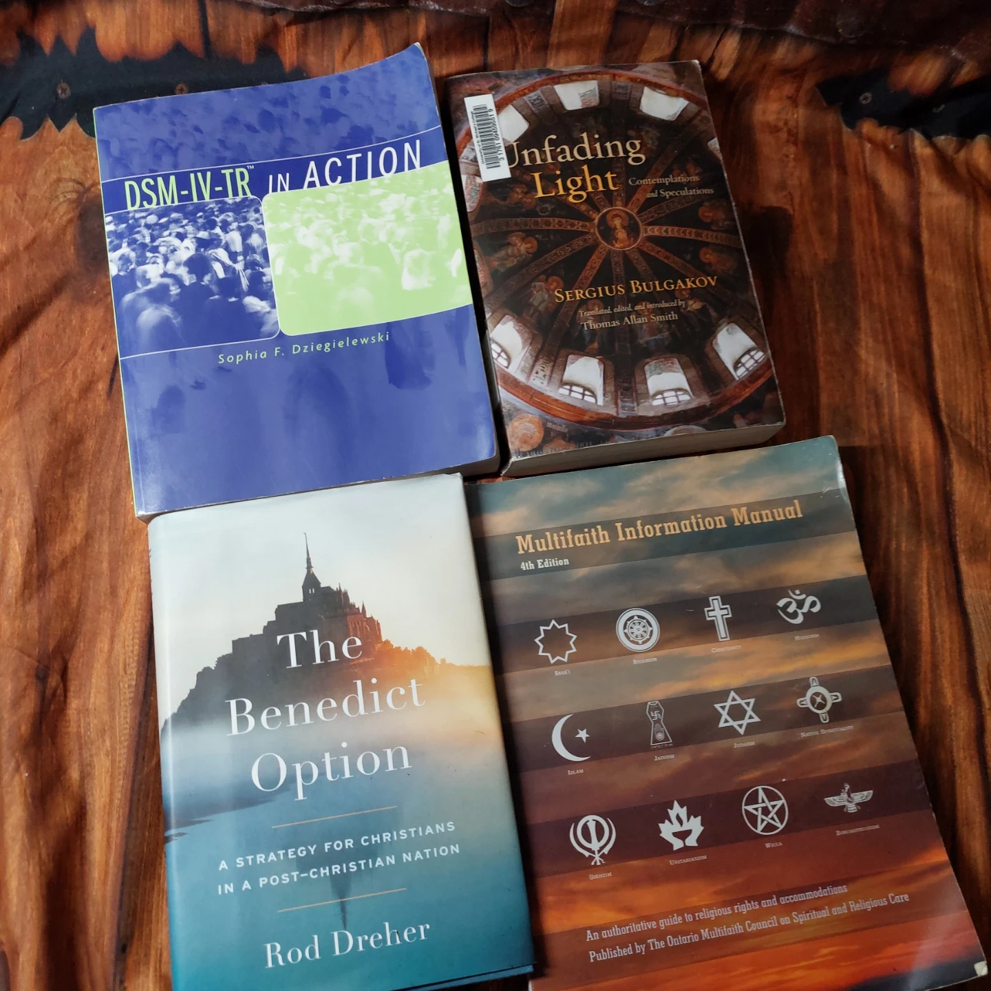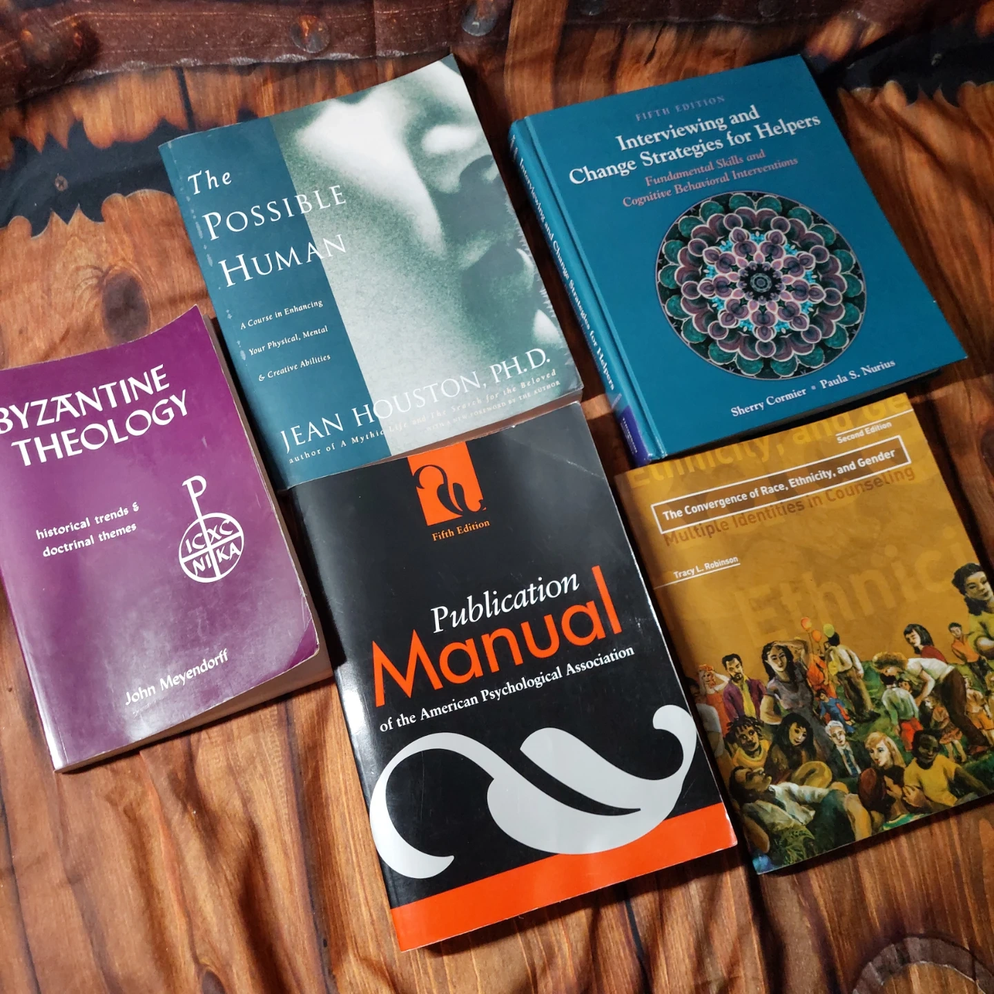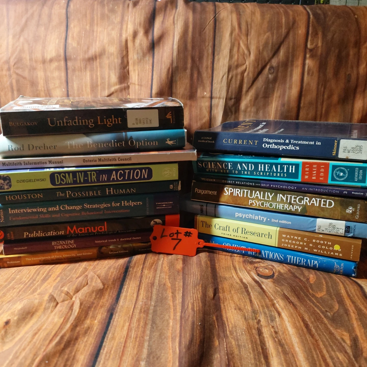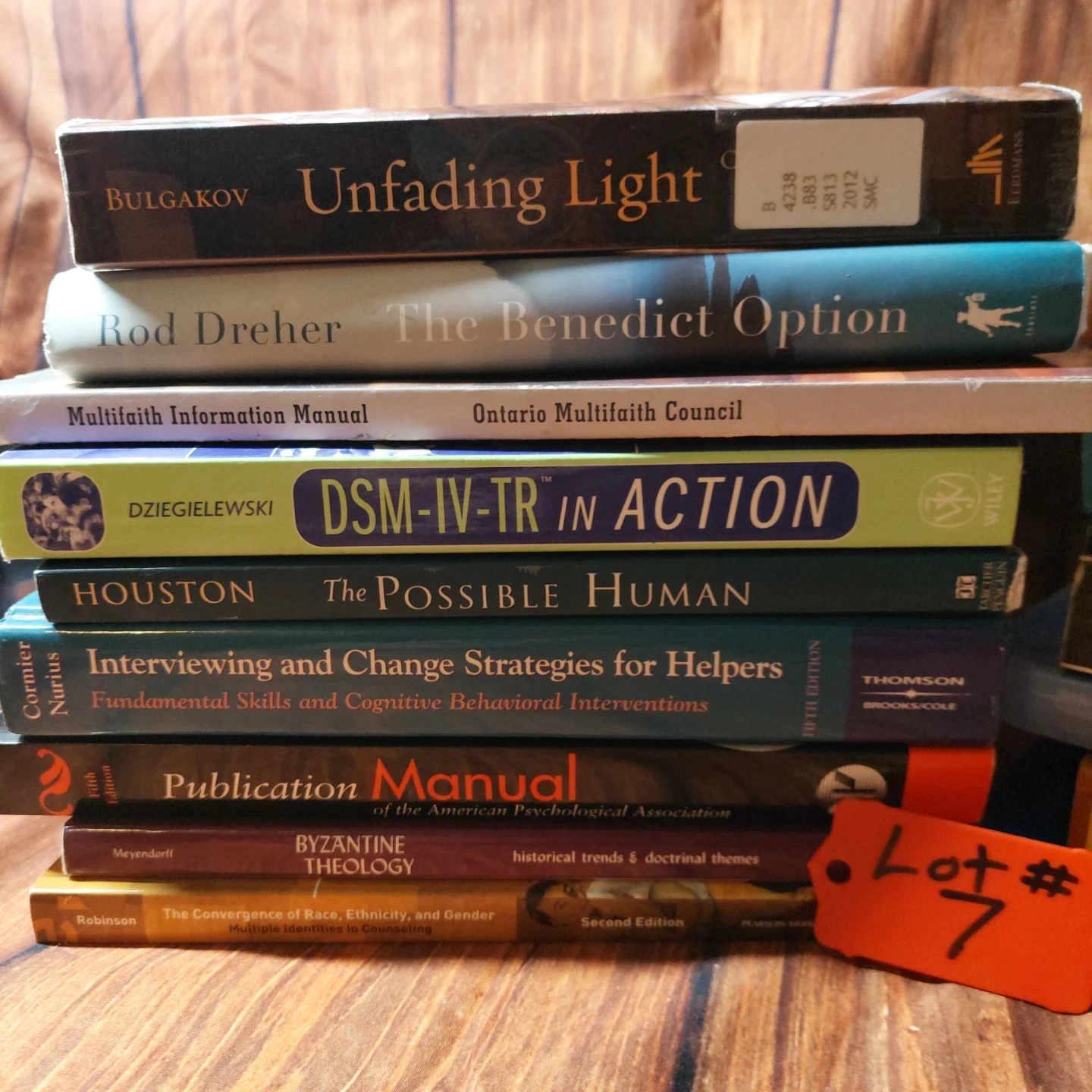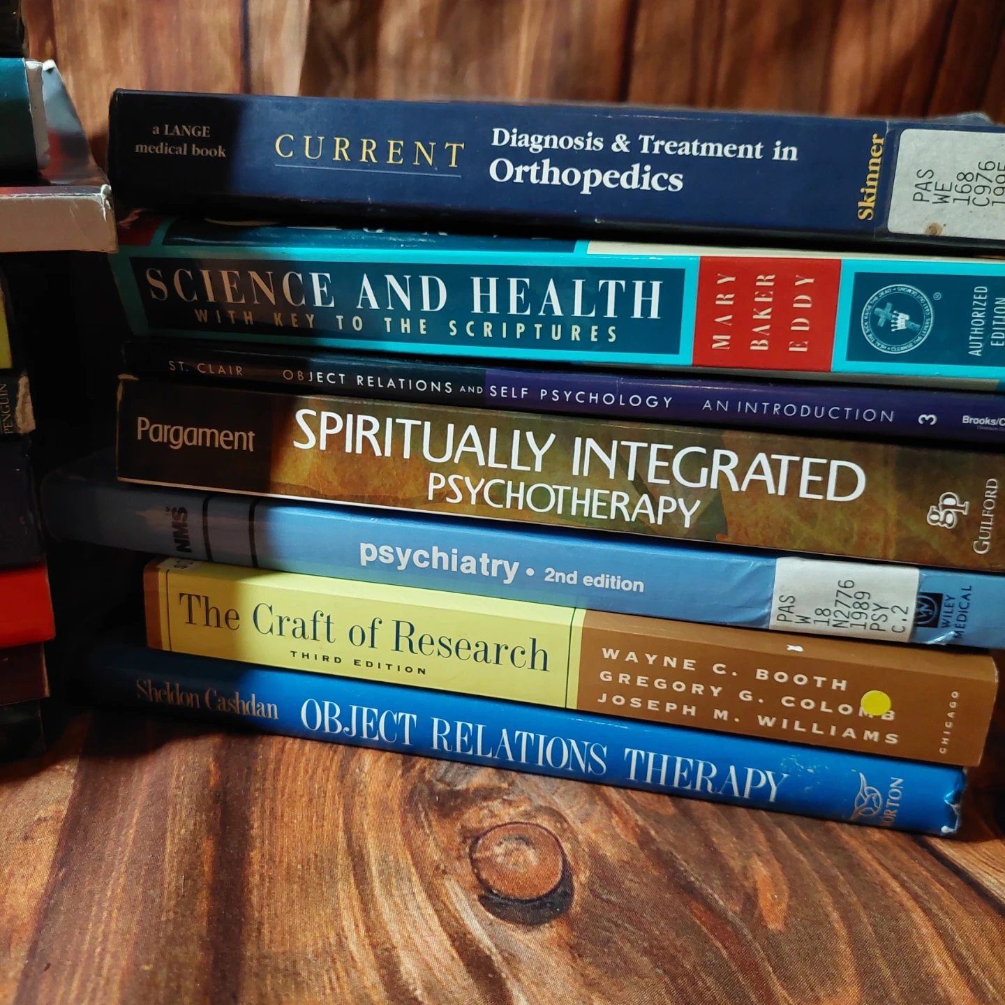 A collection of books covering various topics including psychology, psychotherapy, and theology. Includes titles like 'Spiritually Integrated Psychotherapy', 'DSM-IV-TR in Action', and 'Byzantine Theology'. Perfect for students or professionals in related fields.