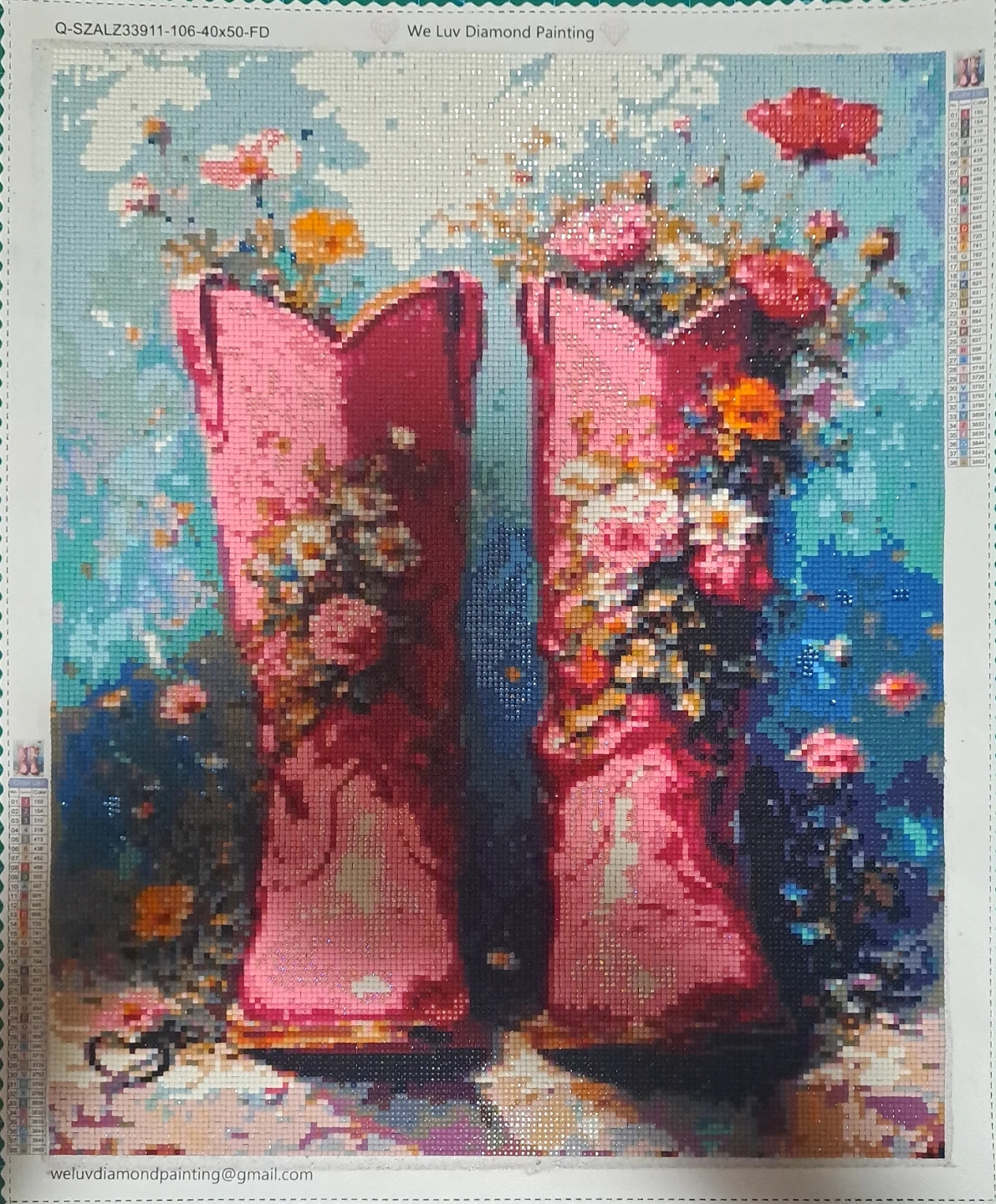 Diamond Painting - Pink Boots with Flowers 16 x 20