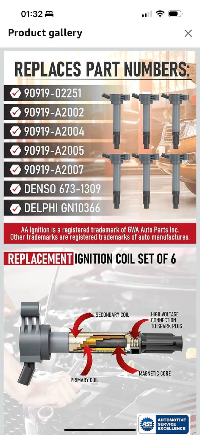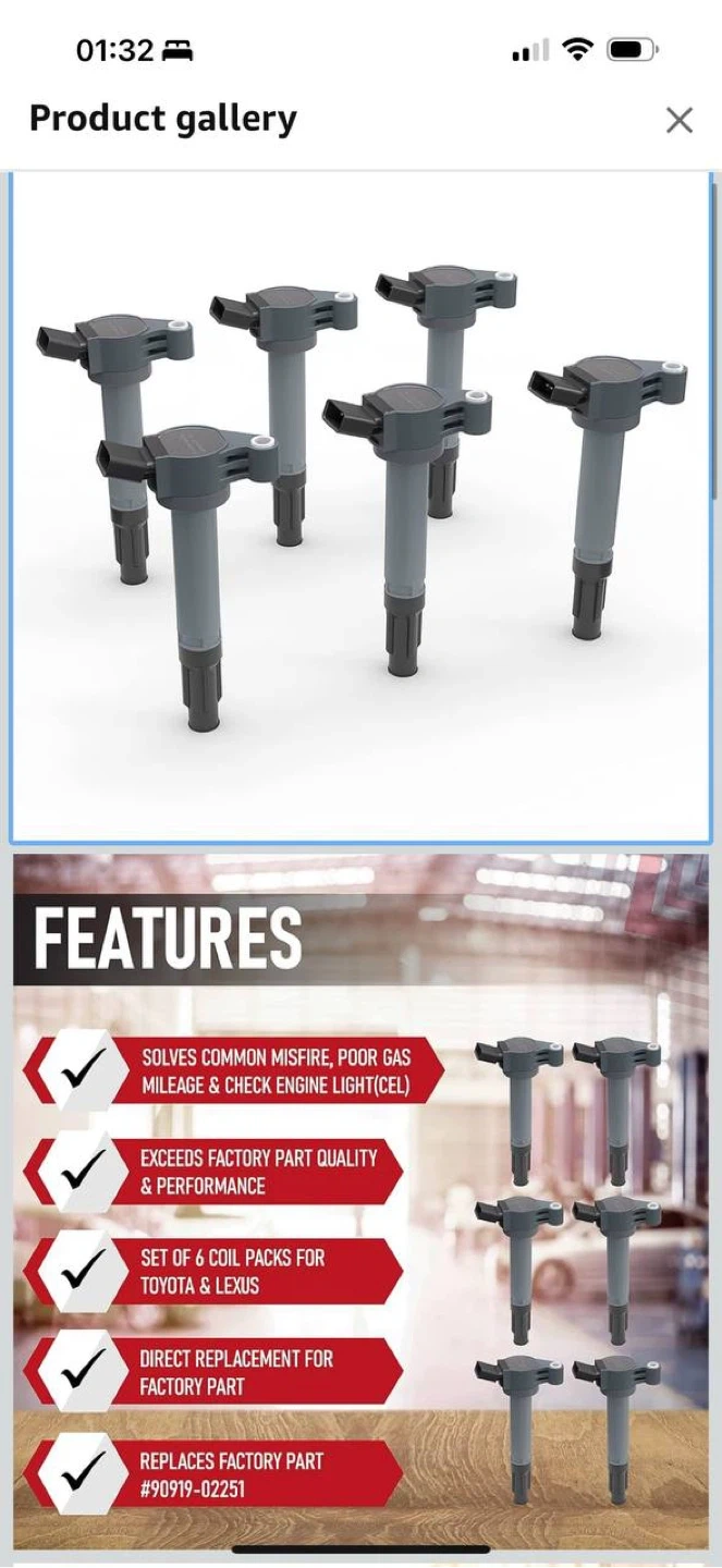 Direct OEM replacement ignition coils for many Toyota & Lexus V6 engines.