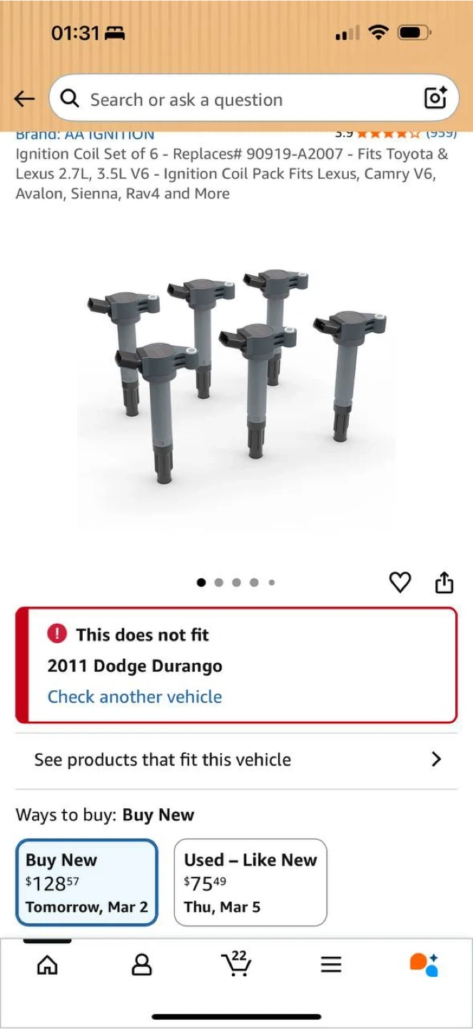 π AA Ignition Coil Pack Set of 6 β 90919-A2007 Replacement β Toyota Lexus V6 β NEW