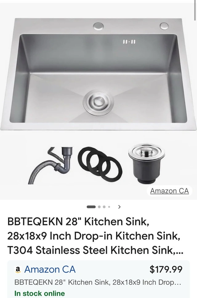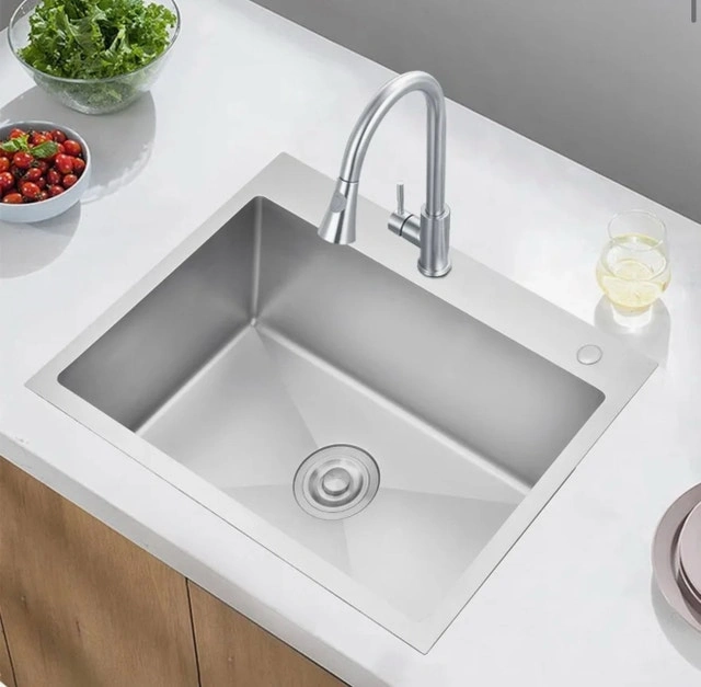 Stainless Steel Kitchen Sink Dimensions: Overall – 28” L x 18” W x 9” D. Gently rounded corners maximize the workspace in the sink bowl, engineered for complete drainage with a gently sloped bottom that prevents standing water. The optimized angle keeps glassware from falling when placed in the sink. Deep Single Bowl Kitchen Sink: 9 inch deep sink design allows you to accommodate stack of dishes, pans and pots, covering up dirty dishes before washing them all. Unbreakable Construction Kitchen Sink: Made of premium T304 stainless steel with a brushed finish to ensure scratch and stain resistance, the Stainless Steel Kitchen Sink is sturdy and durable, and will not fade over time. Featuring a commercial-grade satin finish that is dent and scratch resistant, it is not only easy to clean, but also highly durable. Sound Barrier Technology: The sound-proof pad have been added to the bottom of all our stainless steel Kitchen Sinks to reduce the sound of running water. An undercoating condensation layer minimizes noise and reduces condensation to protect your cabinet. X-Water Guideline: Water drains easily to avoid clogging. Topmount Convenience: Our sink seamlessly integrates with any countertop material for versatile styling. Designed for easy installation and removal without surface damage. Includes a sink drain pipe and filter for optimal drainage efficiency.